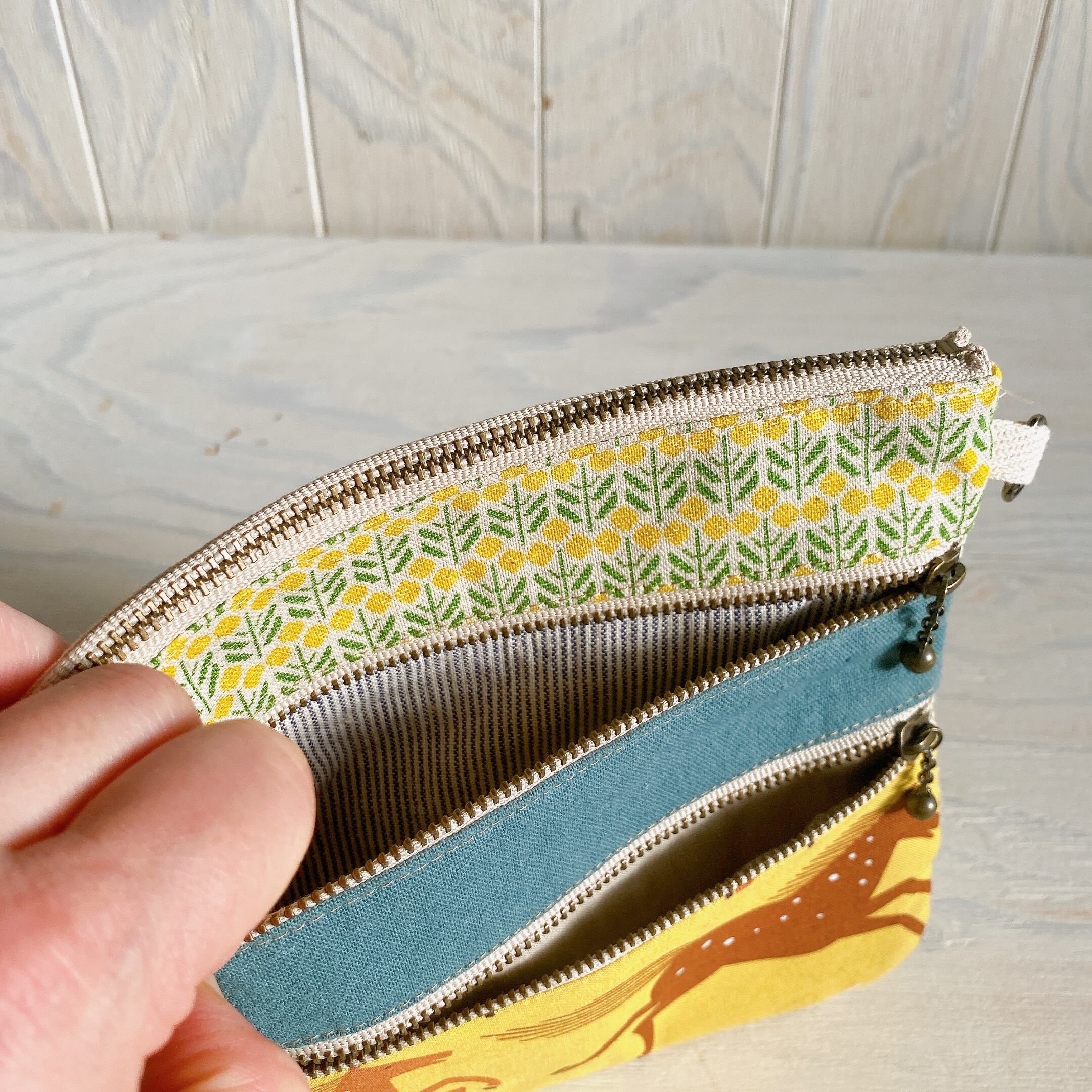 3ファスナーフラットポーチ・サコッシュにもなります(ウマ・キイロ)
