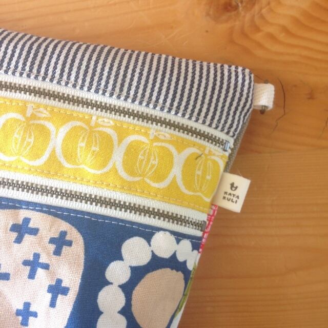 大きめな3ファスナーポーチ*ポシェットにもなります(アオどんぐり)