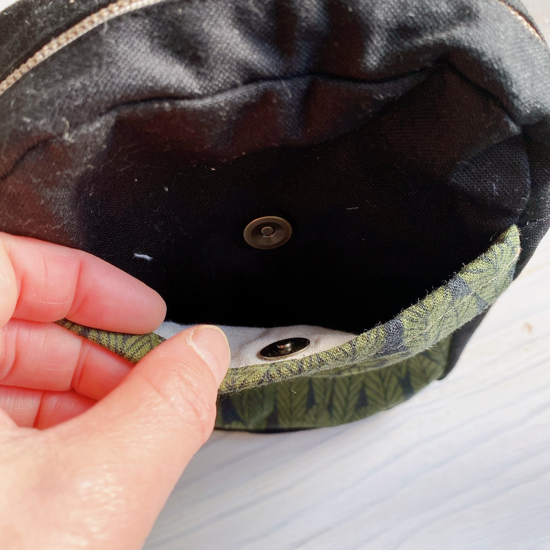 後ろのポケットにはマグネットボタンがついています。