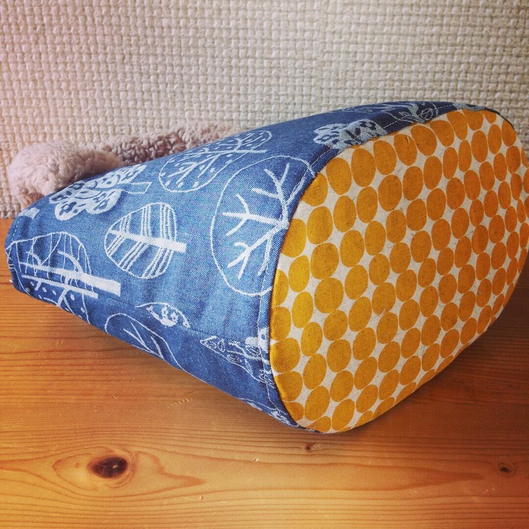 底部分にも森の柄に合うようなからし色のドット生地を使っています。