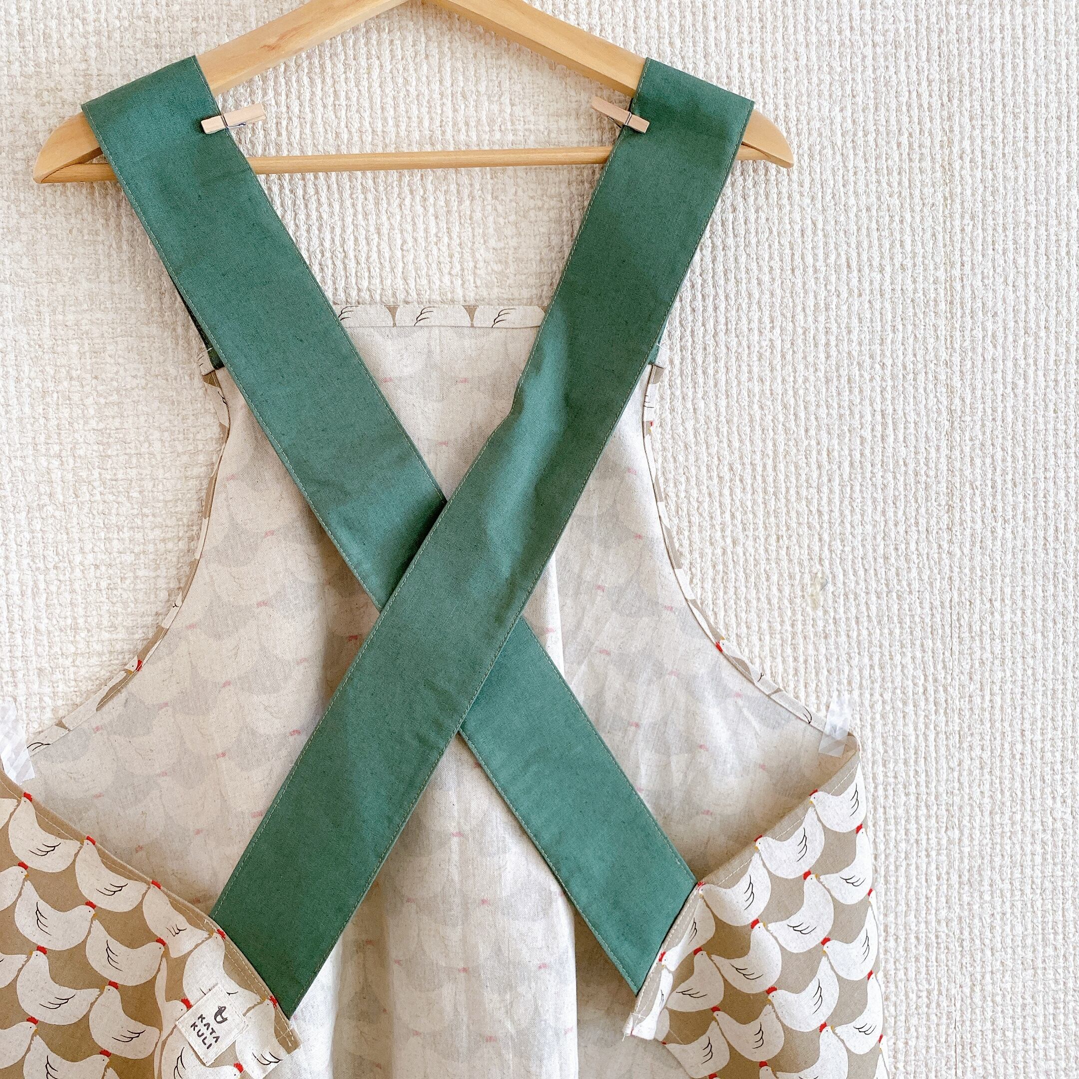 エプロン本体の生地は、しっかり目の綿麻キャンバス生地です。