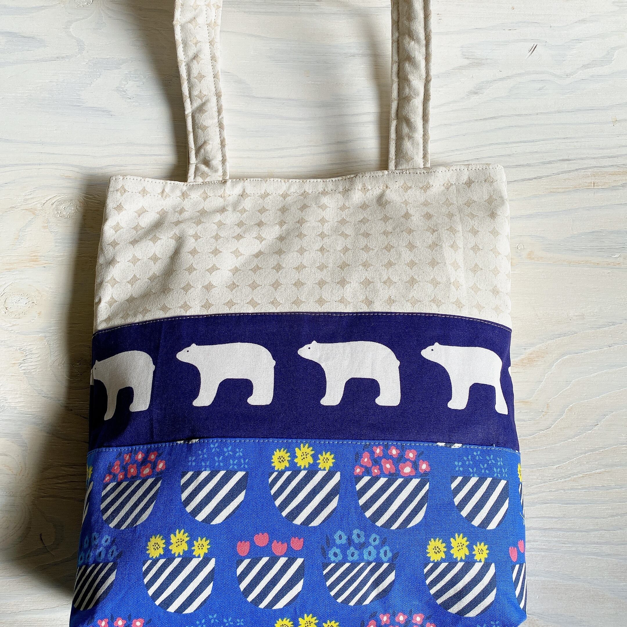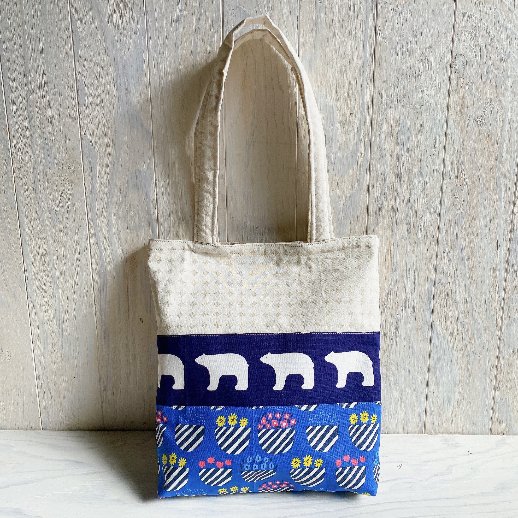 3種類の生地をつなぎ合わせたオンリーワンのバックです。