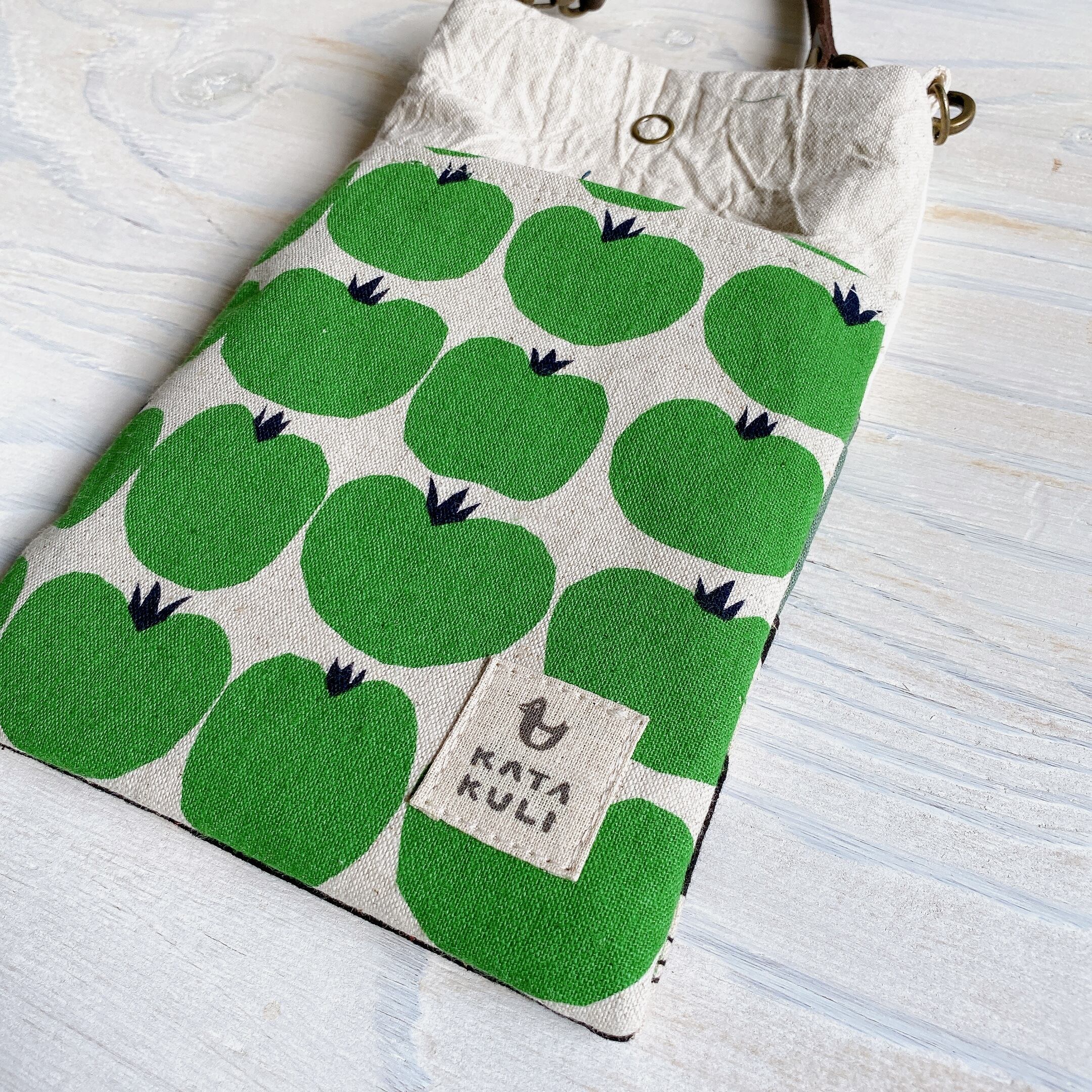 入り口のスナップボタンがスマホがうっかりポーチからこぼれるのを防いでくれます。