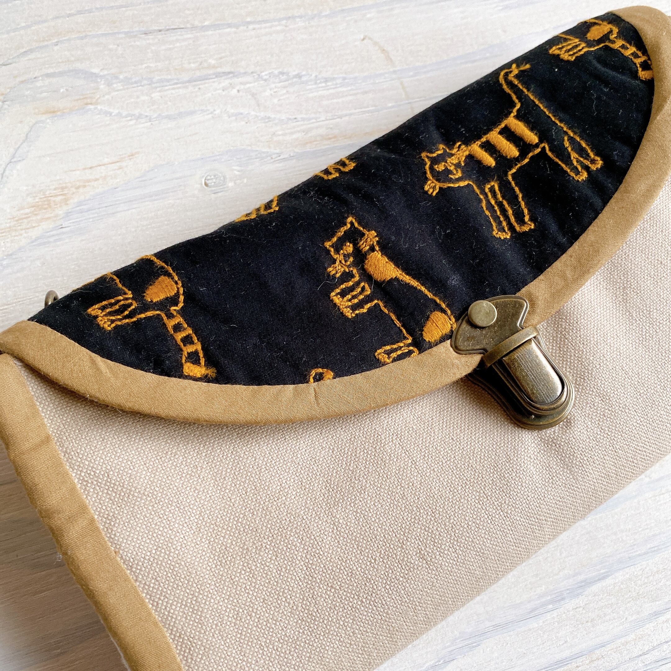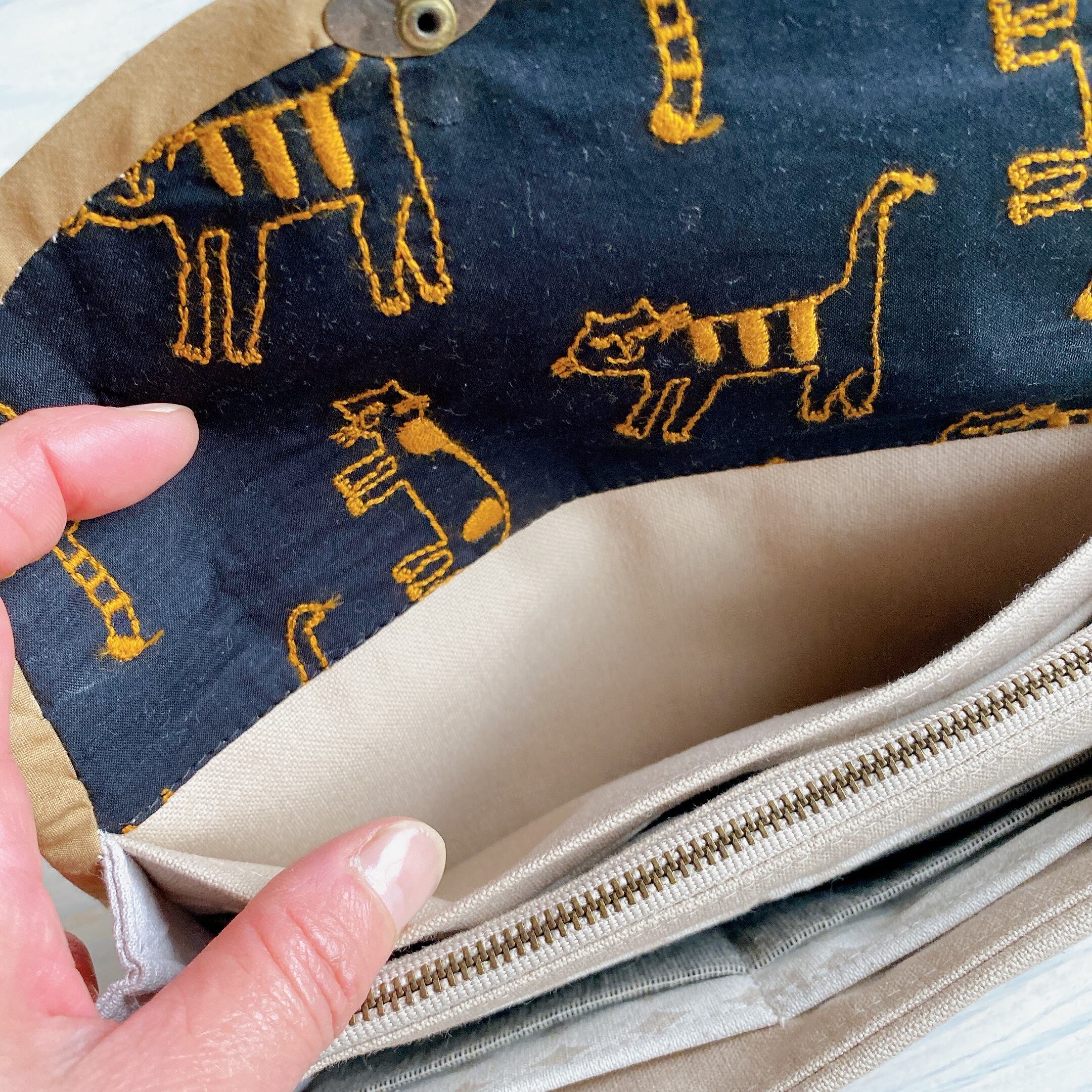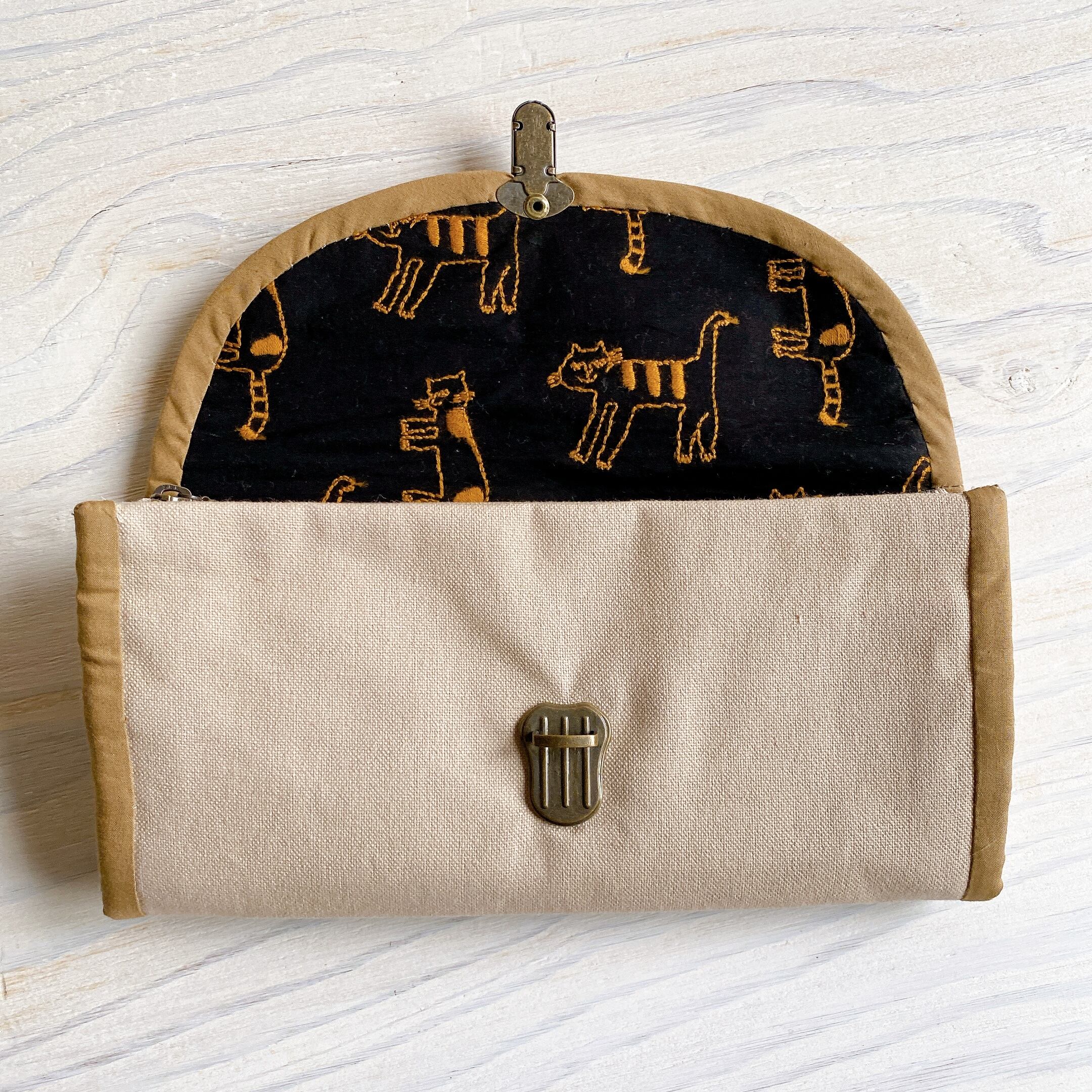 カードがすっきり収納の長財布(刺繍ネコ・クロ)