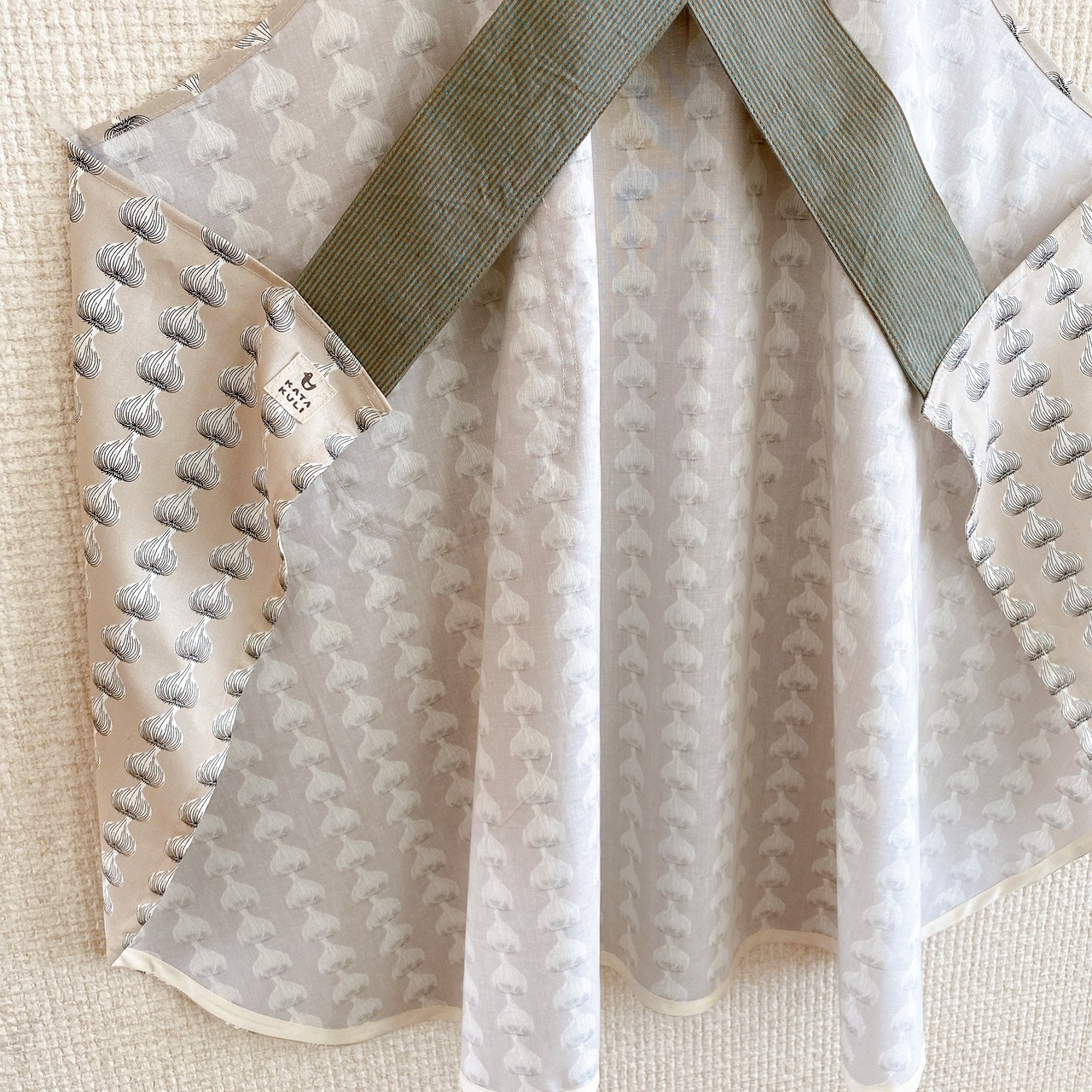 おとなクロスエプロン(ベージュにんにく・チェック)