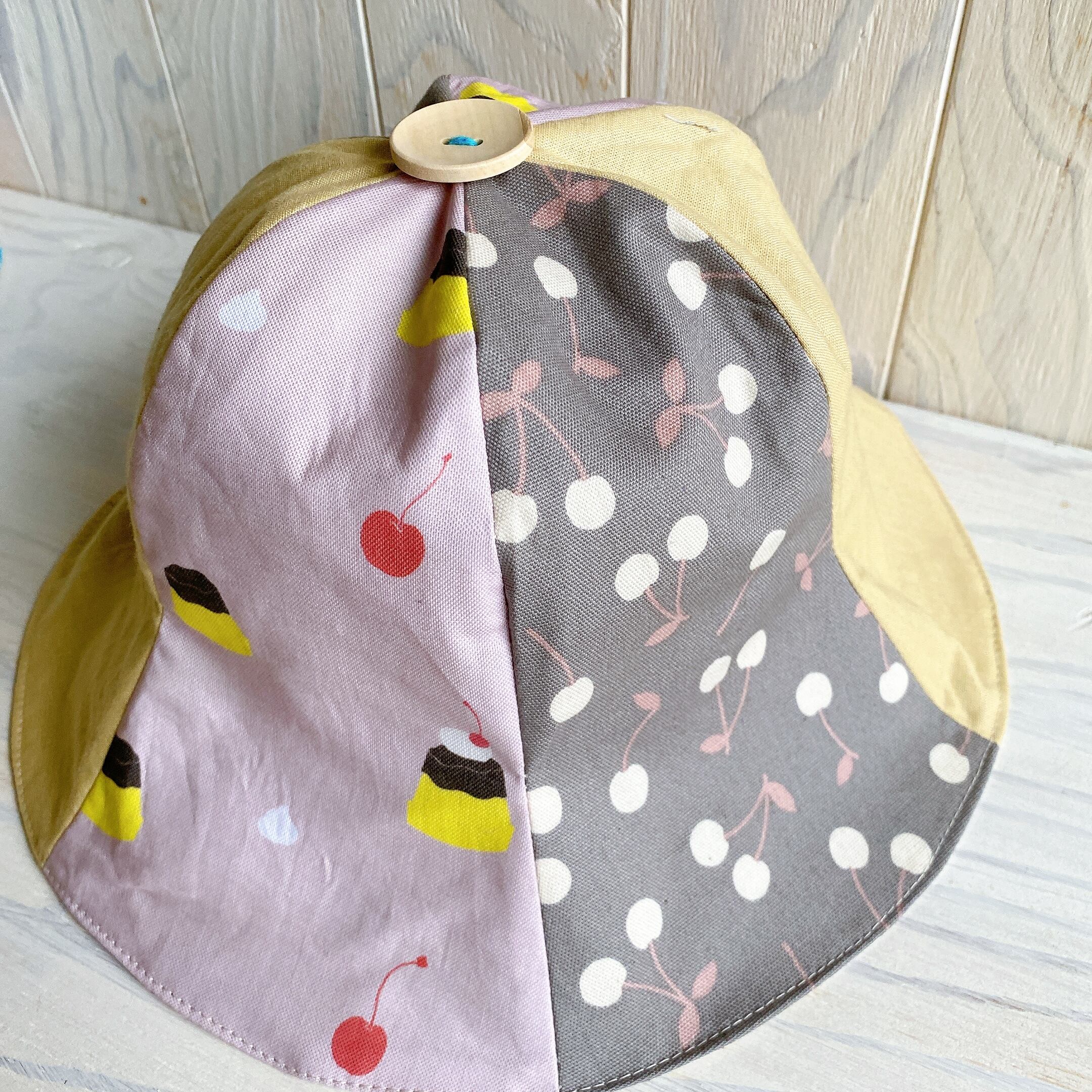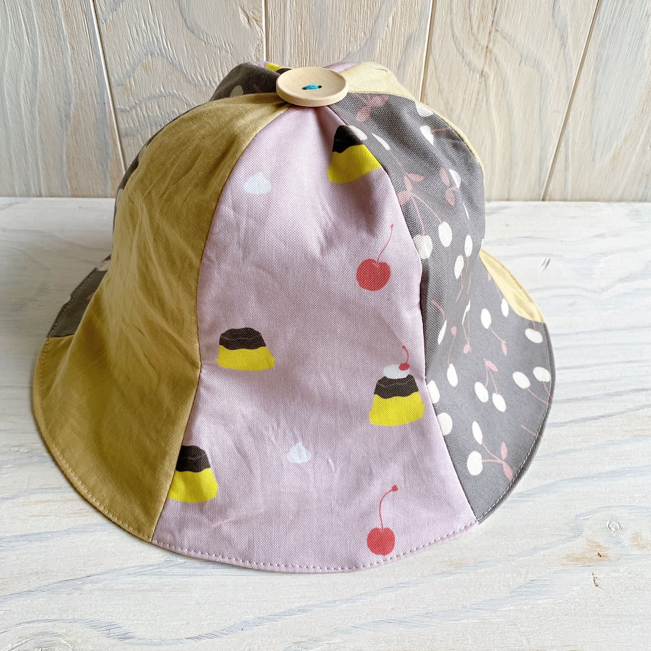相性の良い3色の生地を組み合わせてチューリップハットにしました。