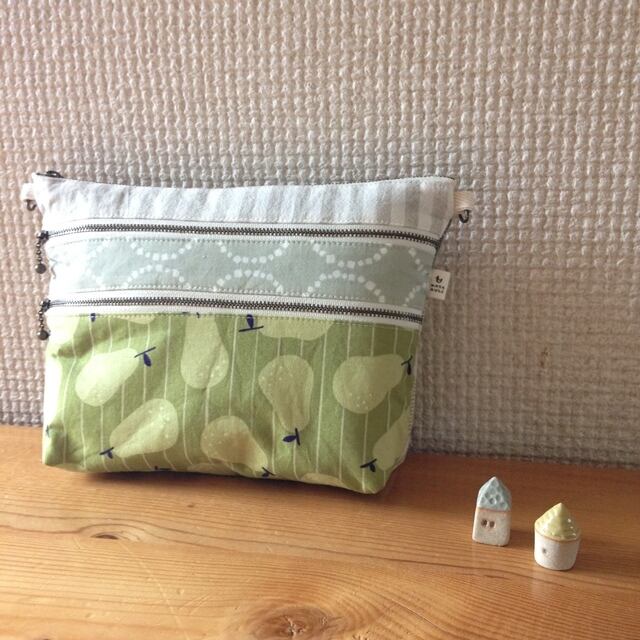 大きめな3ファスナーポーチ*ポシェットにもなります(なし)