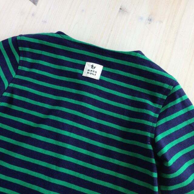 16/2天竺のボーダーニットでそんなに伸びなくって程よく厚みのある天竺です。