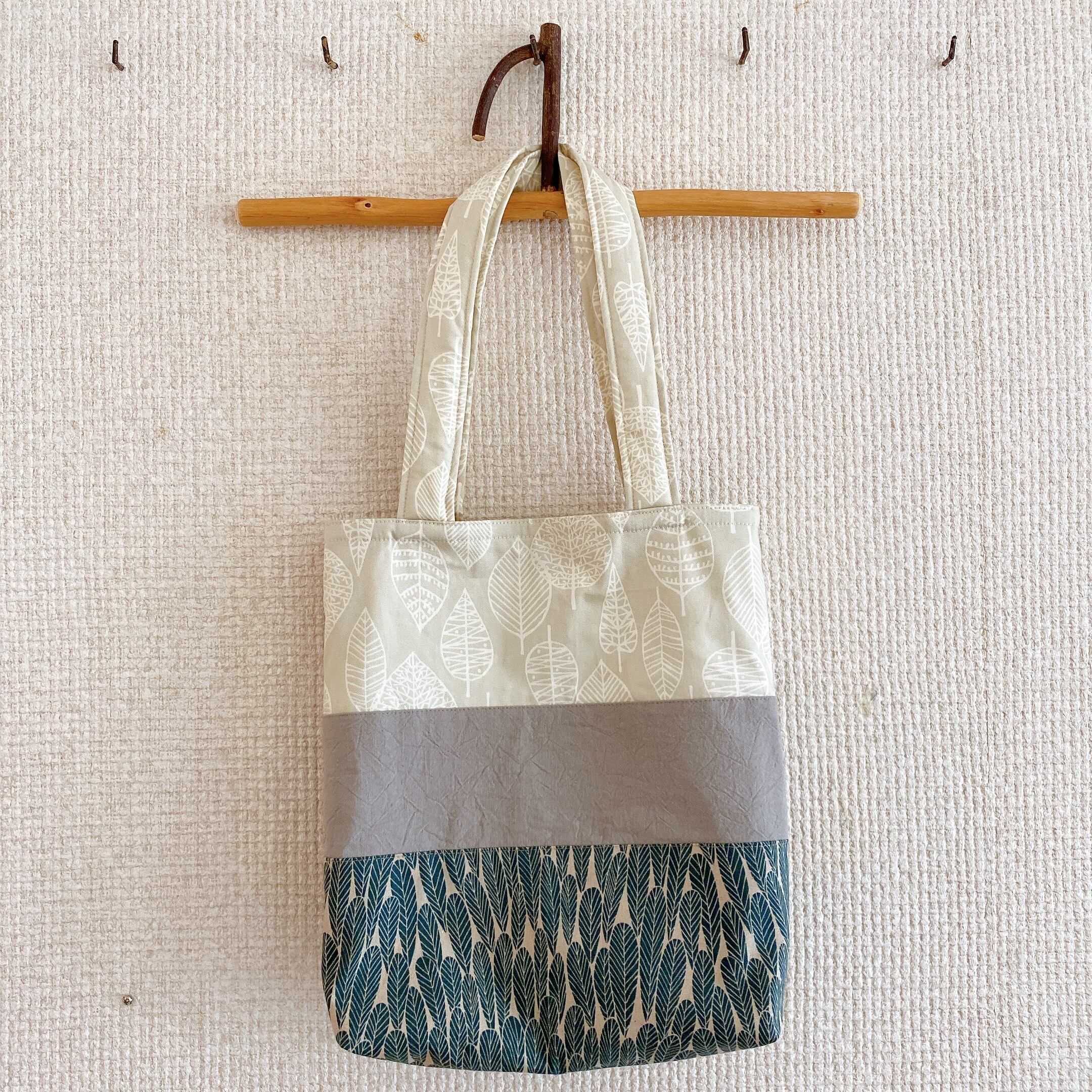 内ポケット付きのA4トートバック(葉っぱアイボリー)
