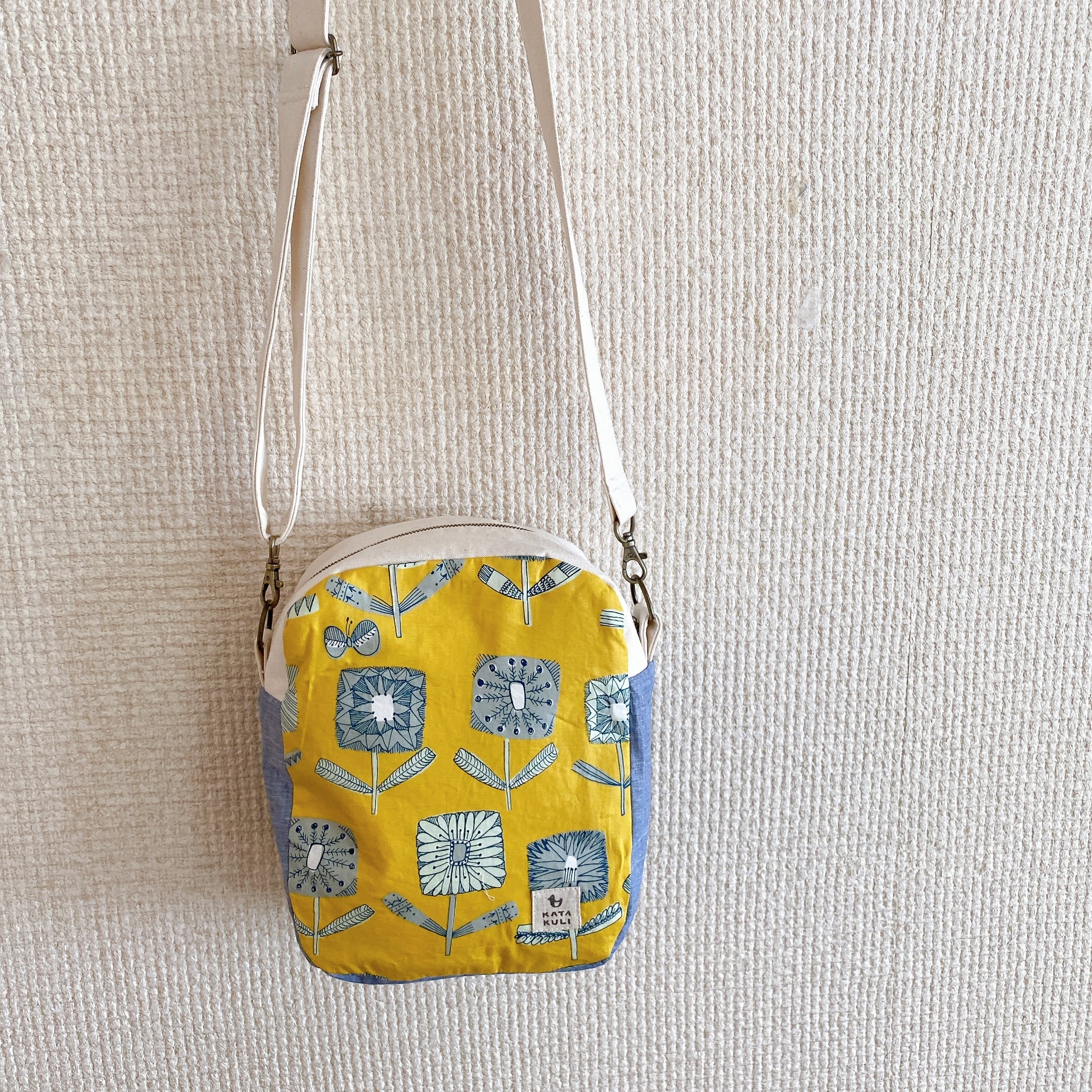 両面さまざまな相性の良い生地を組み合わせて斜め掛けできるおとなのポシェットを作りました。