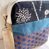 両面さまざまな相性の良い生地を組み合わせて斜め掛けできるおとなのポシェットを作りました。
