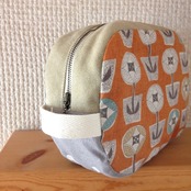 ポーチ★おむつ、お化粧入れにも♪(オレンジフラワー)