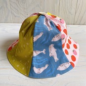 相性の良い3色の生地を組み合わせてチューリップハットにしました。