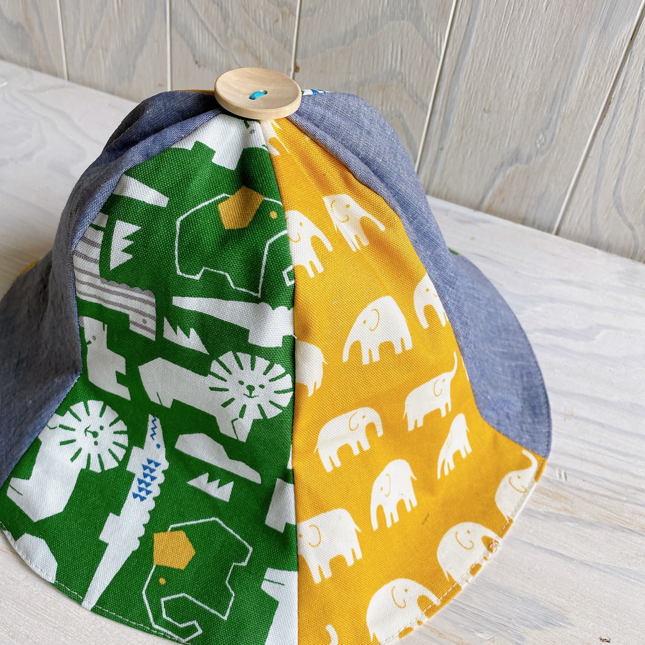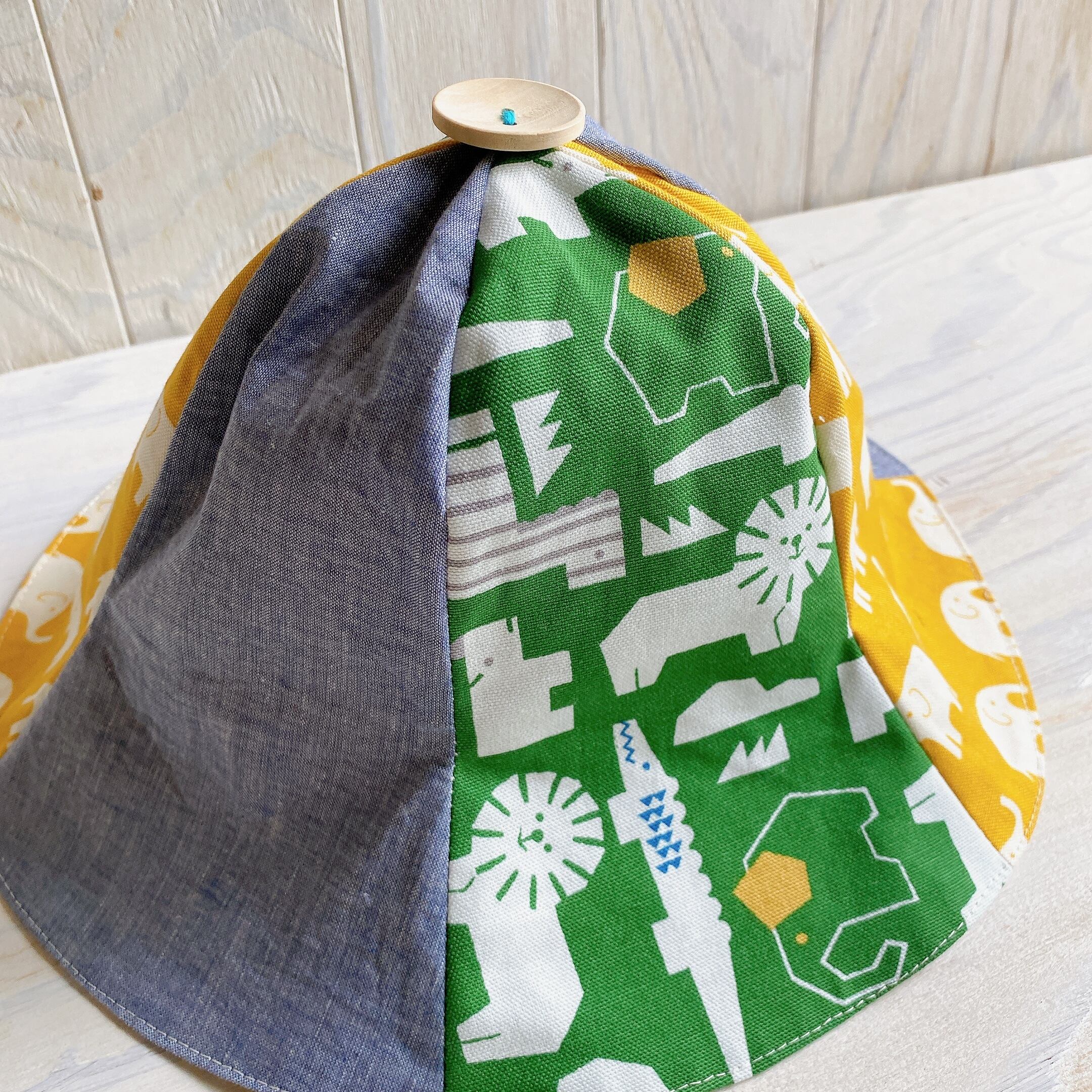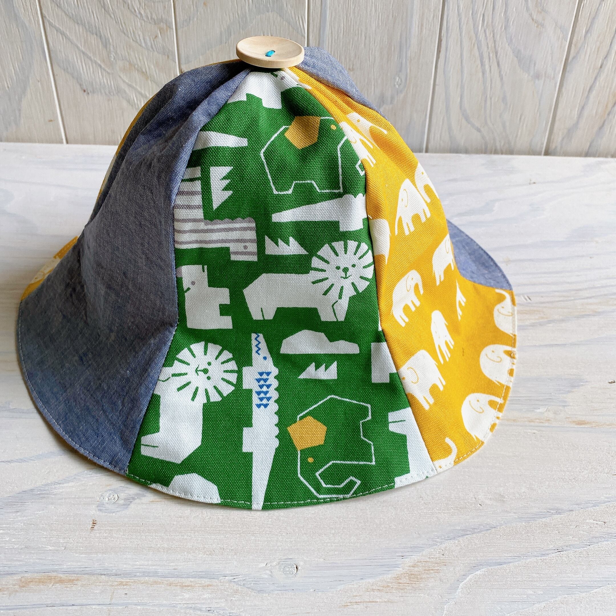 相性の良い3色の生地を組み合わせてチューリップハットにしました。
