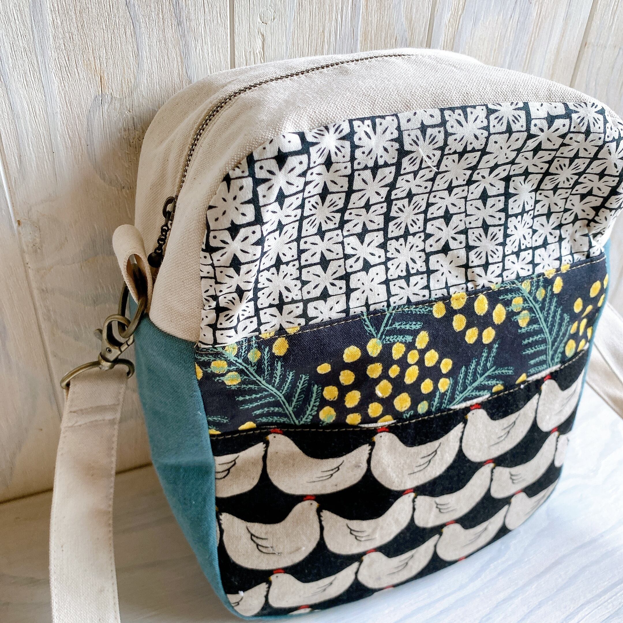 両面さまざまな相性の良い生地を組み合わせて斜め掛けできるおとなのポシェットを作りました。