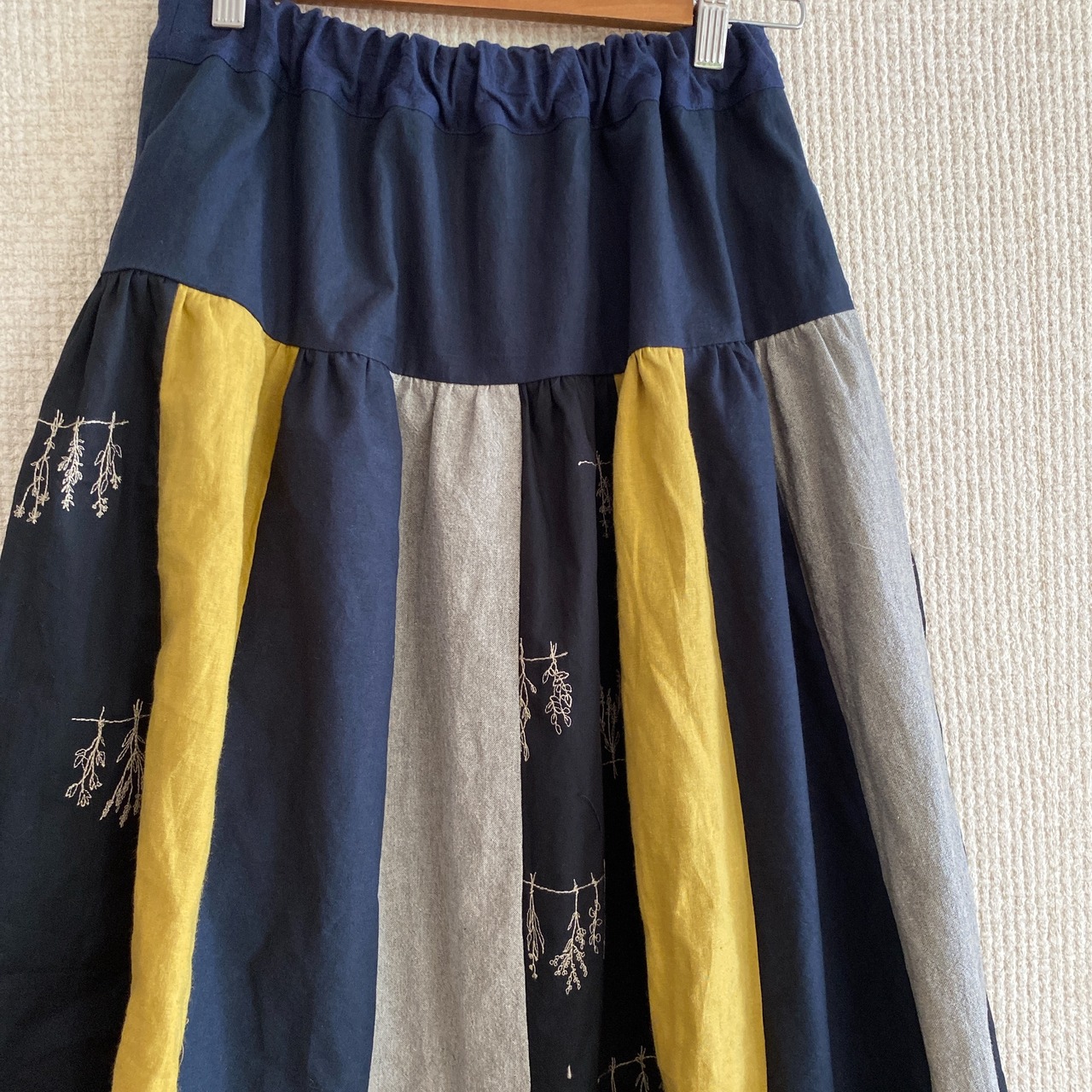 相性の良い生地をつなぎ合わせて個性的なスカートできました(*^^*)
