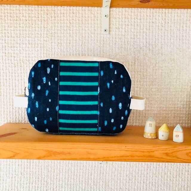 ポーチ★おむつ、お化粧入れにも♪(つぶつぶボーダー×バード)