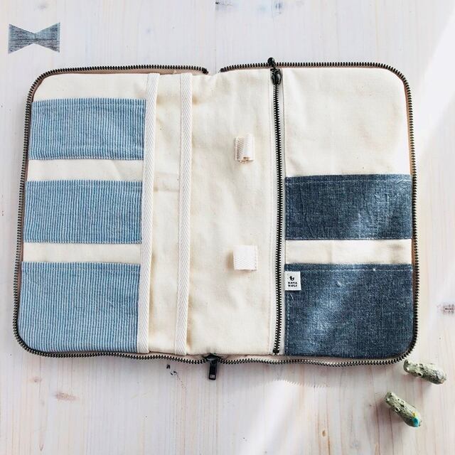 ケースがパカっと全開になるように、ファスナー止まりの部分に工夫をしています。