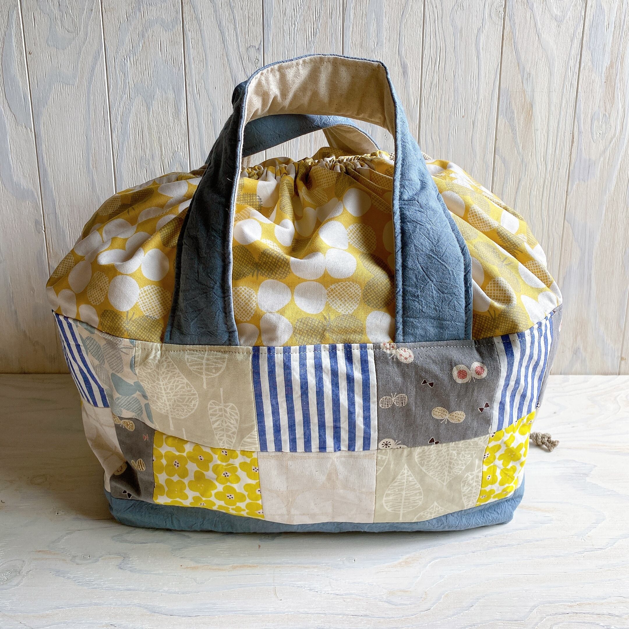 巾着の紐をぎゅっとしめると、中のものもこぼれず
