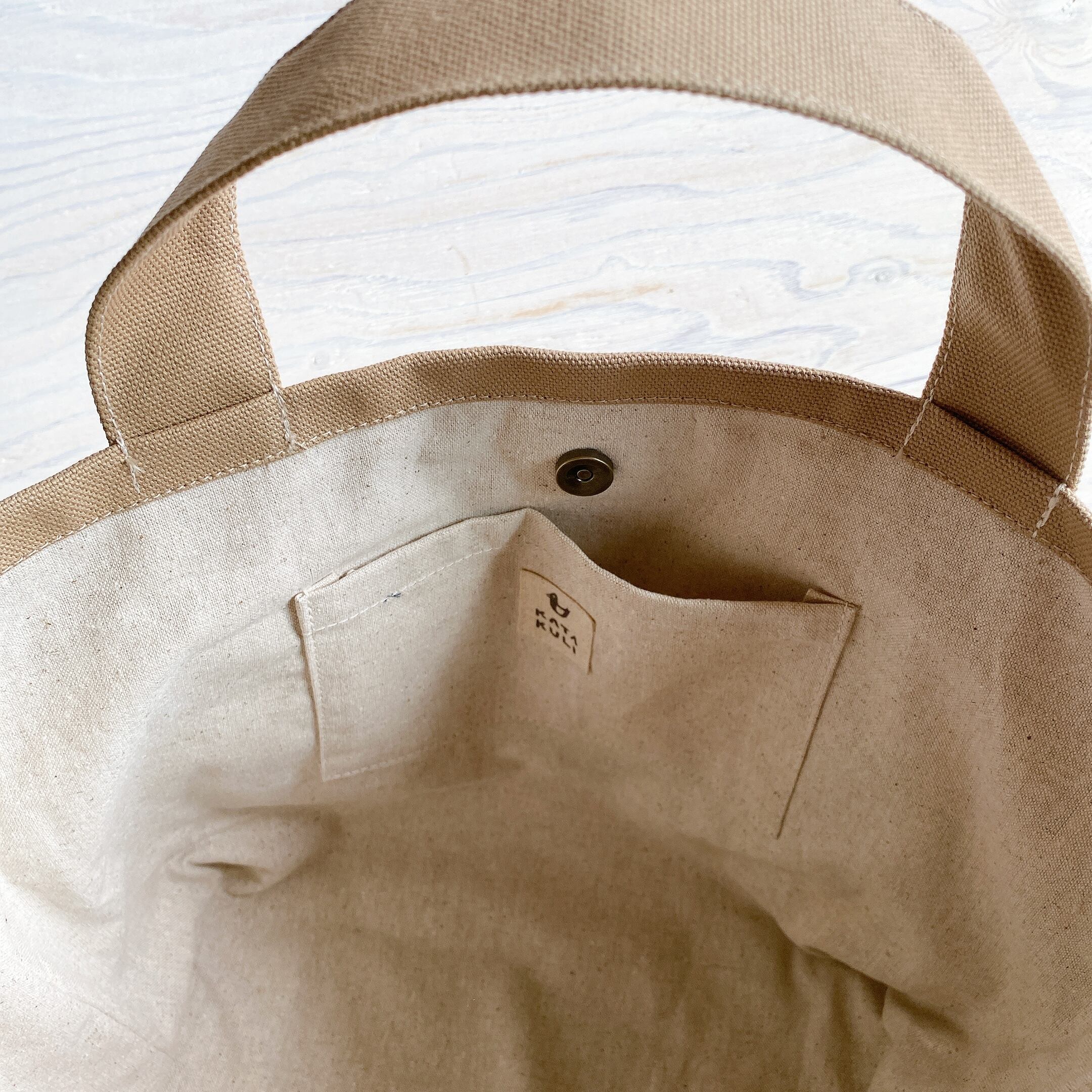 裏地には、綿麻キャンバスの生地を使用、内ポケットもついています。
