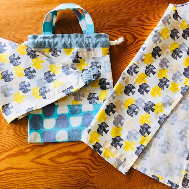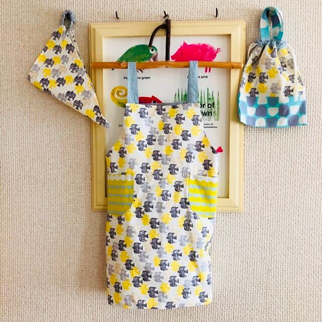 入学準備に♪エプロンセット(サイズ120)キイロつばめ