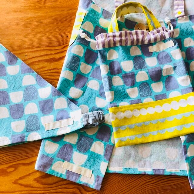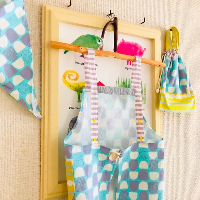 入学準備に♪エプロンセット(サイズ120)*ミント