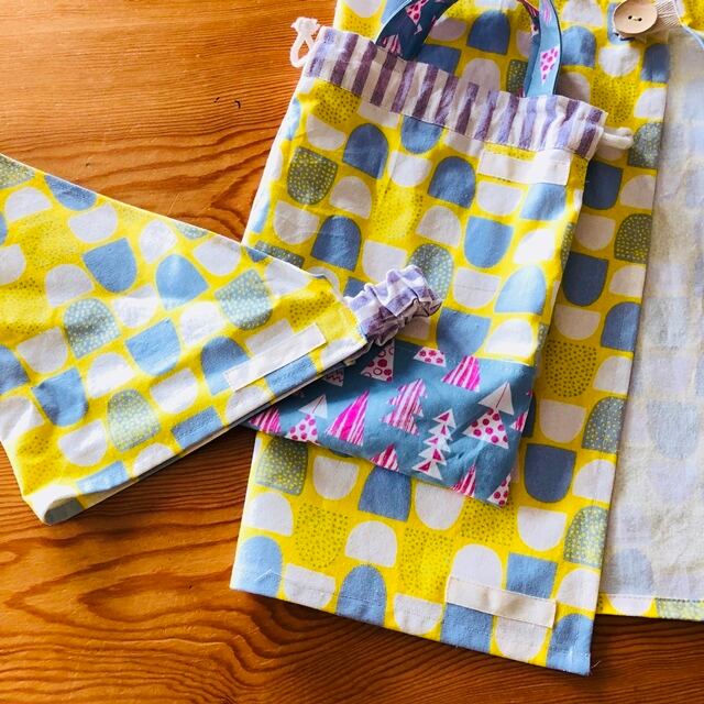 と思い、お年頃な高学年さんに気に入ってもらえそうな生地でエプロンを作りました。