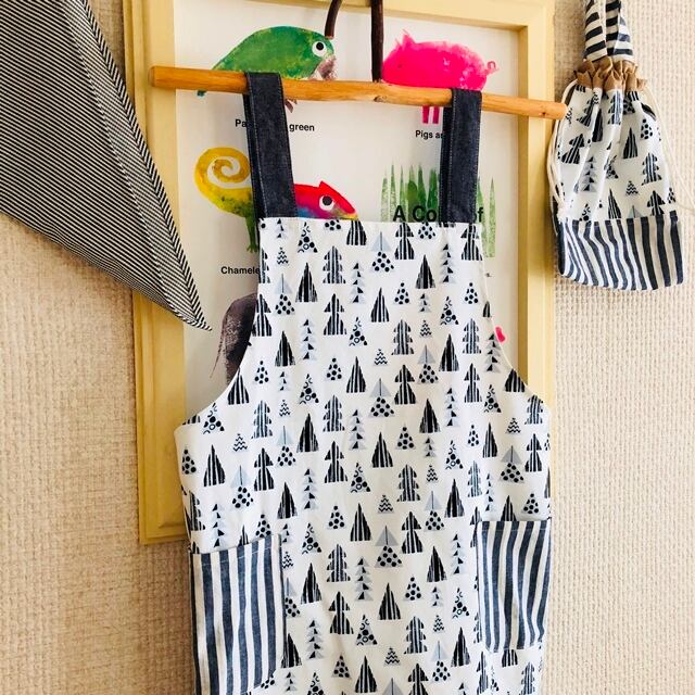 高学年キッズのエプロンセット(サイズ150)モノトーンツリー
