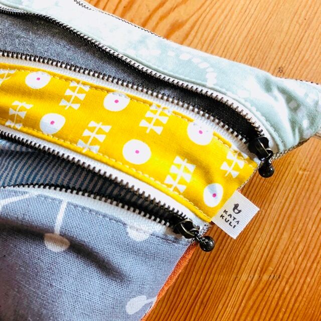 大きめな3ファスナーポーチ*ポシェットにも(わたげ×レンガフラワー)