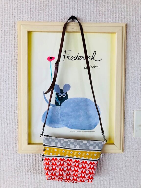 大きめな3ファスナーポーチ*ポシェットにも(チューリップ)