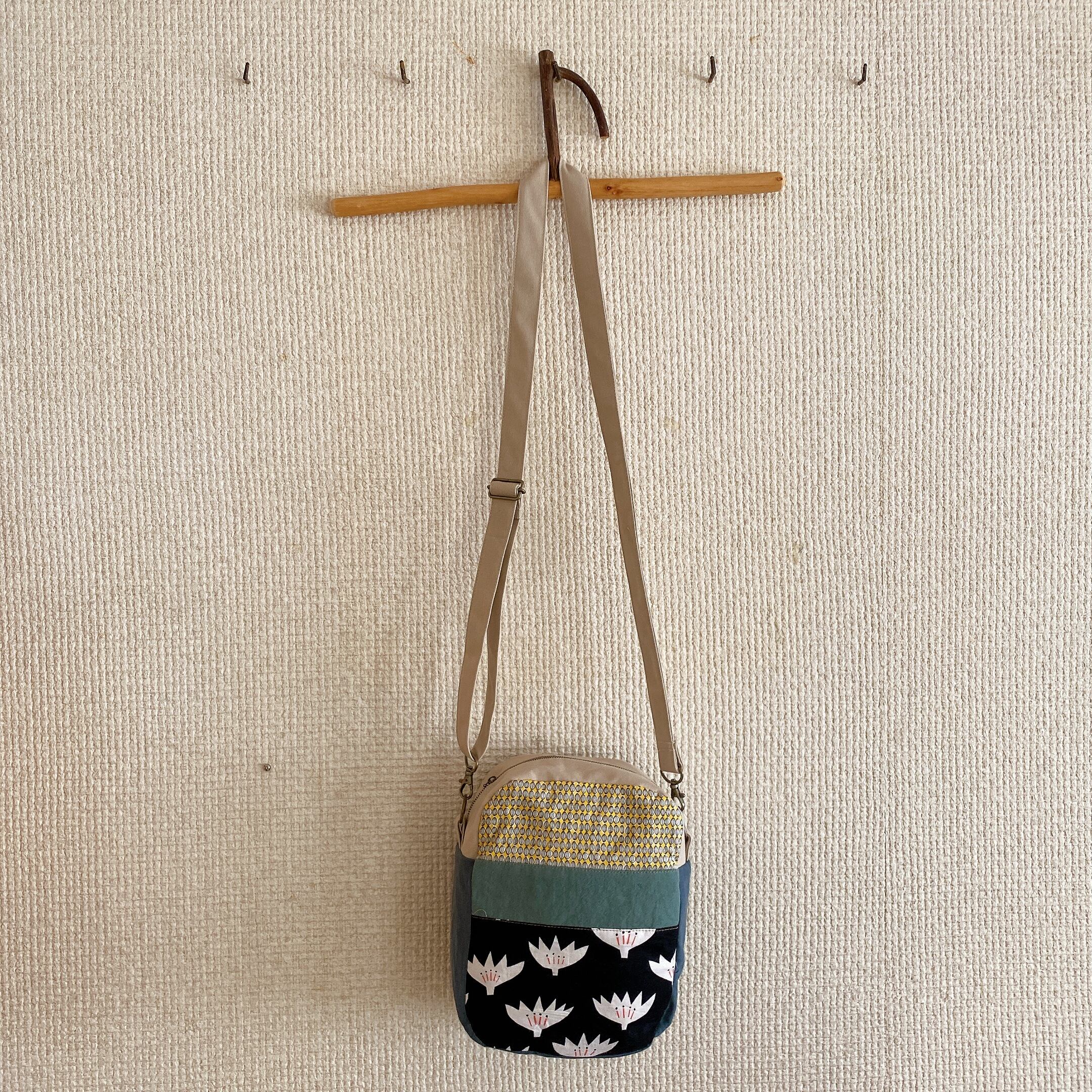 両面さまざまな相性の良い生地を組み合わせて斜め掛けできるおとなのポシェットを作りました。