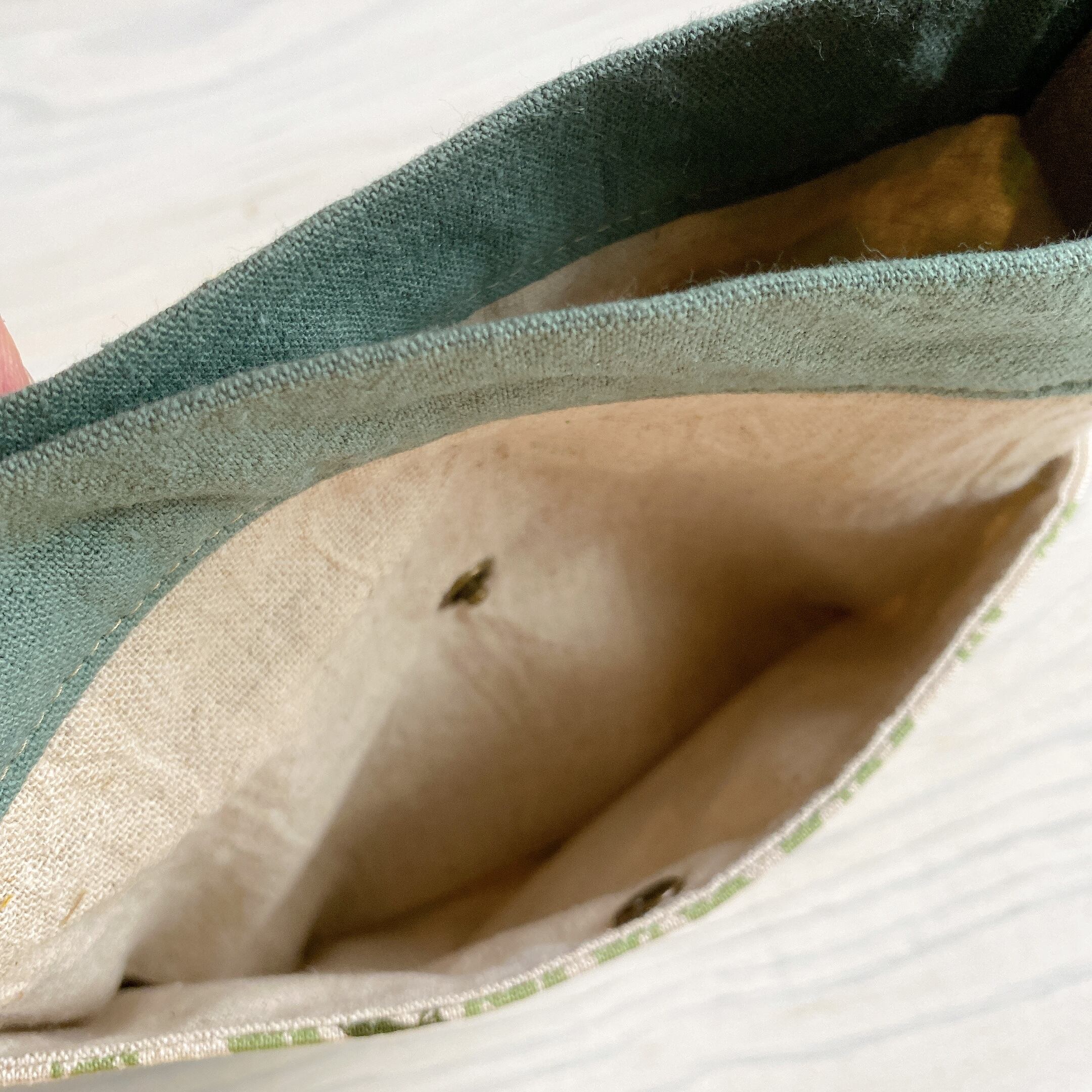 ポケット部分にはアンティークゴールドのスナップボタンがついています。