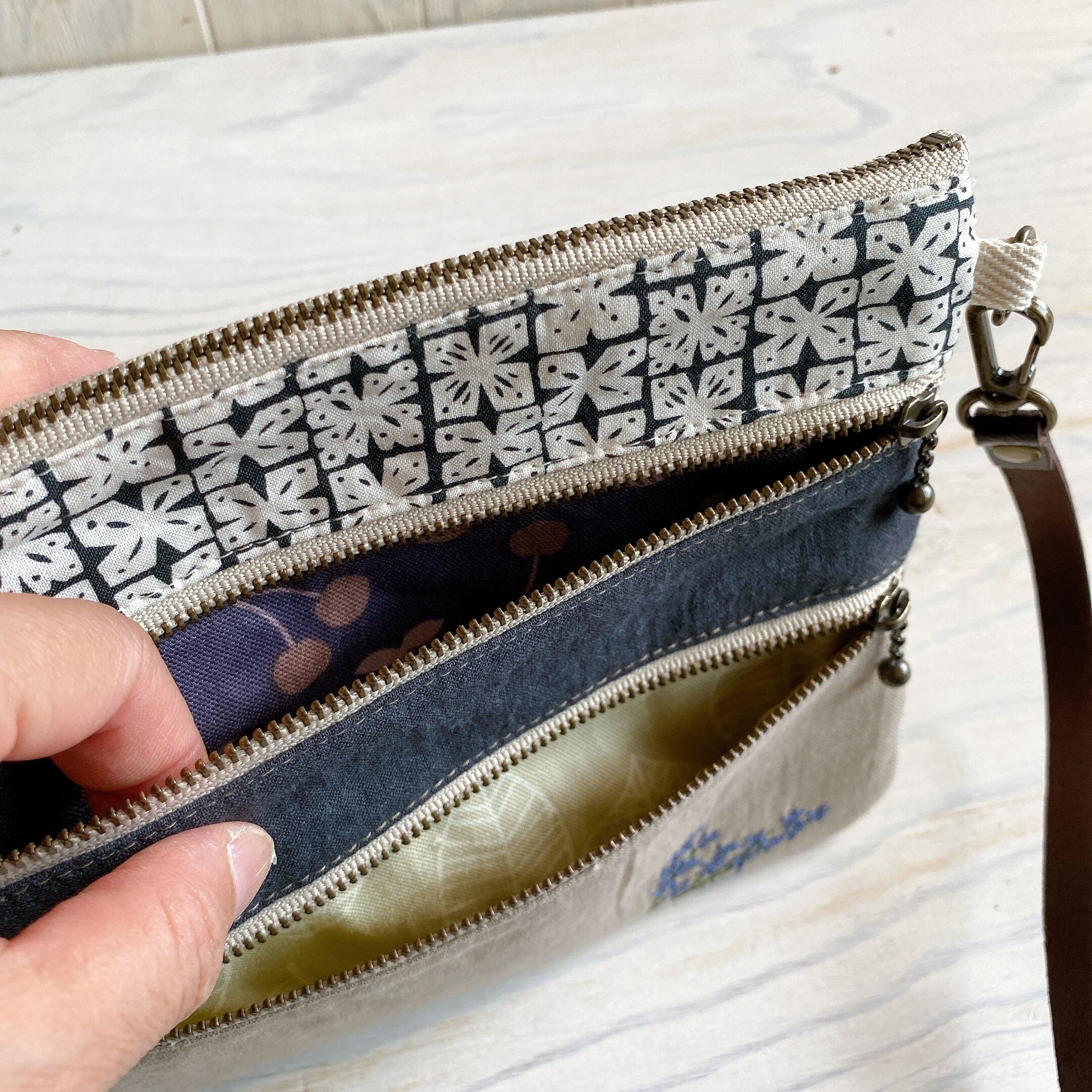 3ファスナーフラットポシェット(刺繍&刺繍)