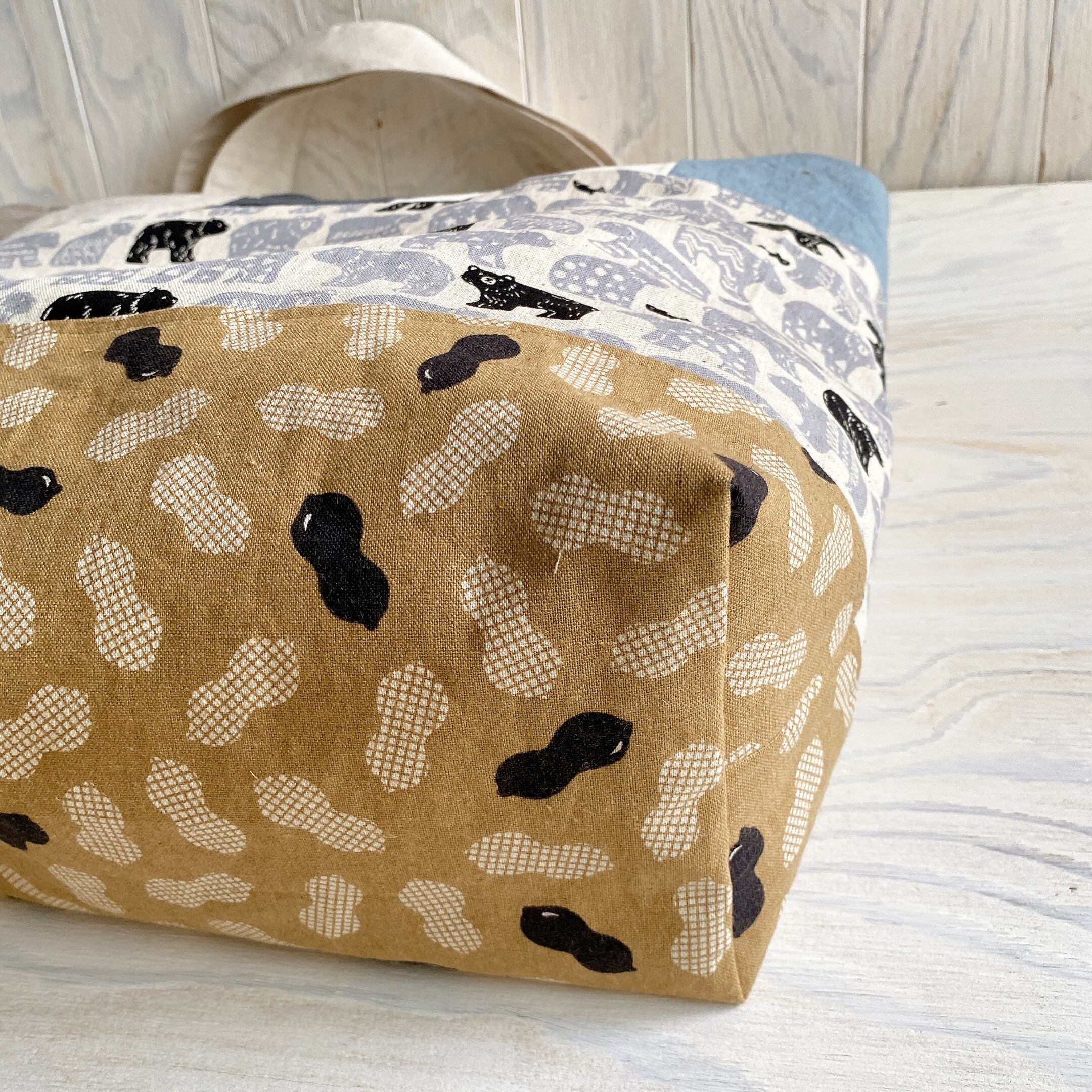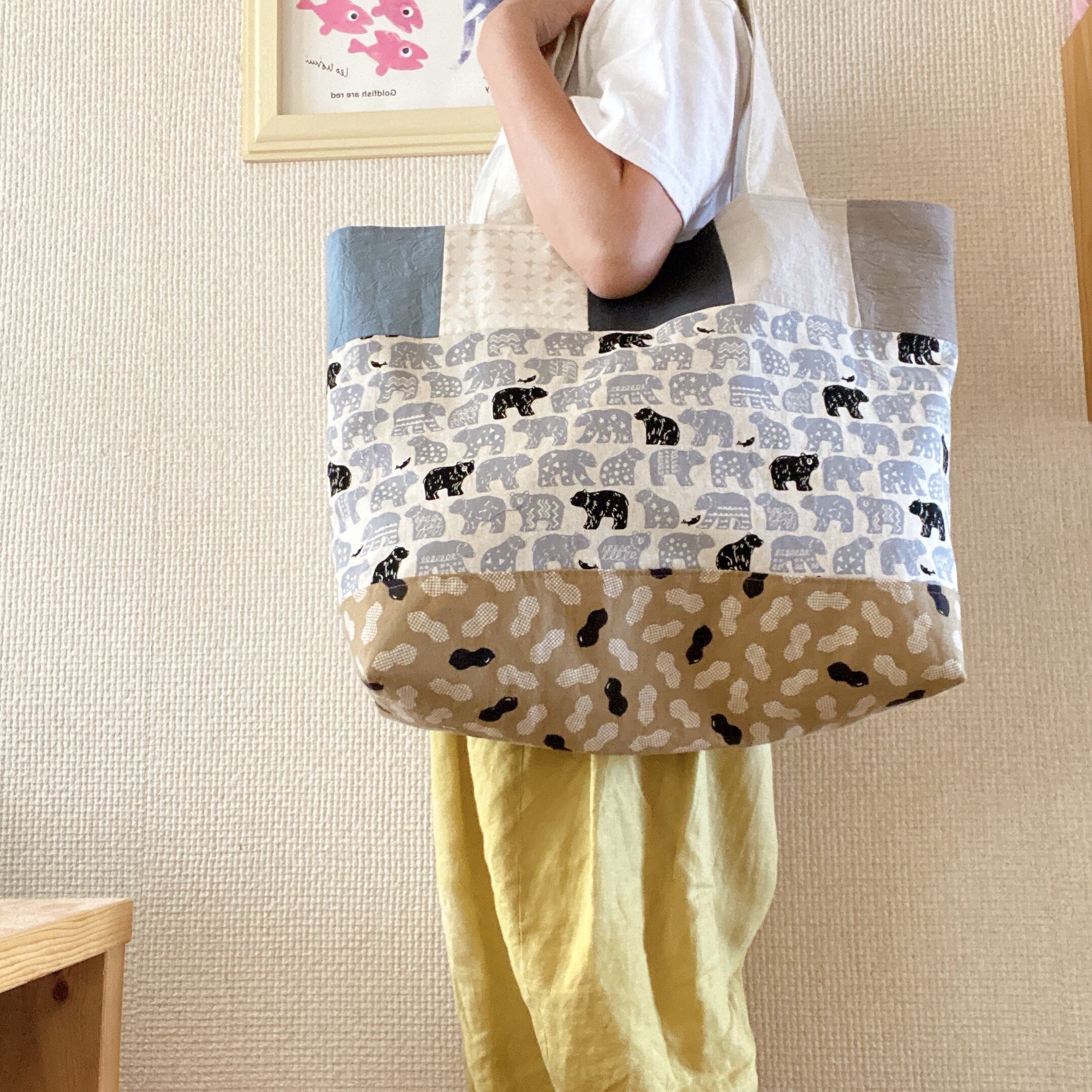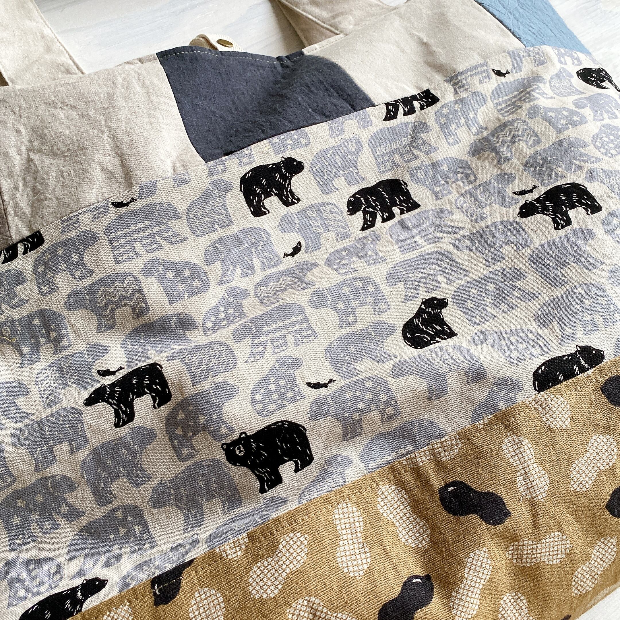 大容量!つぎはぎ布バック(くま)