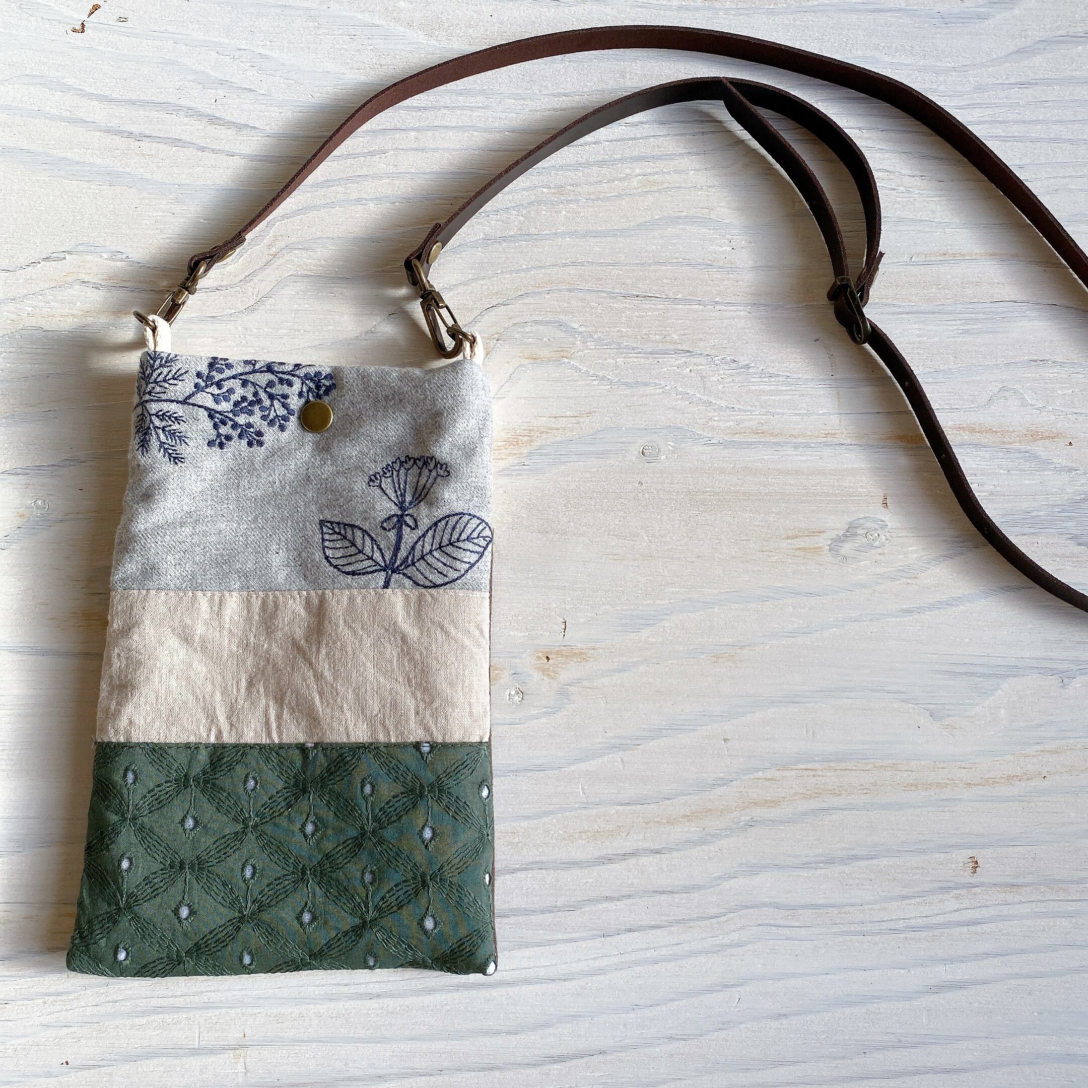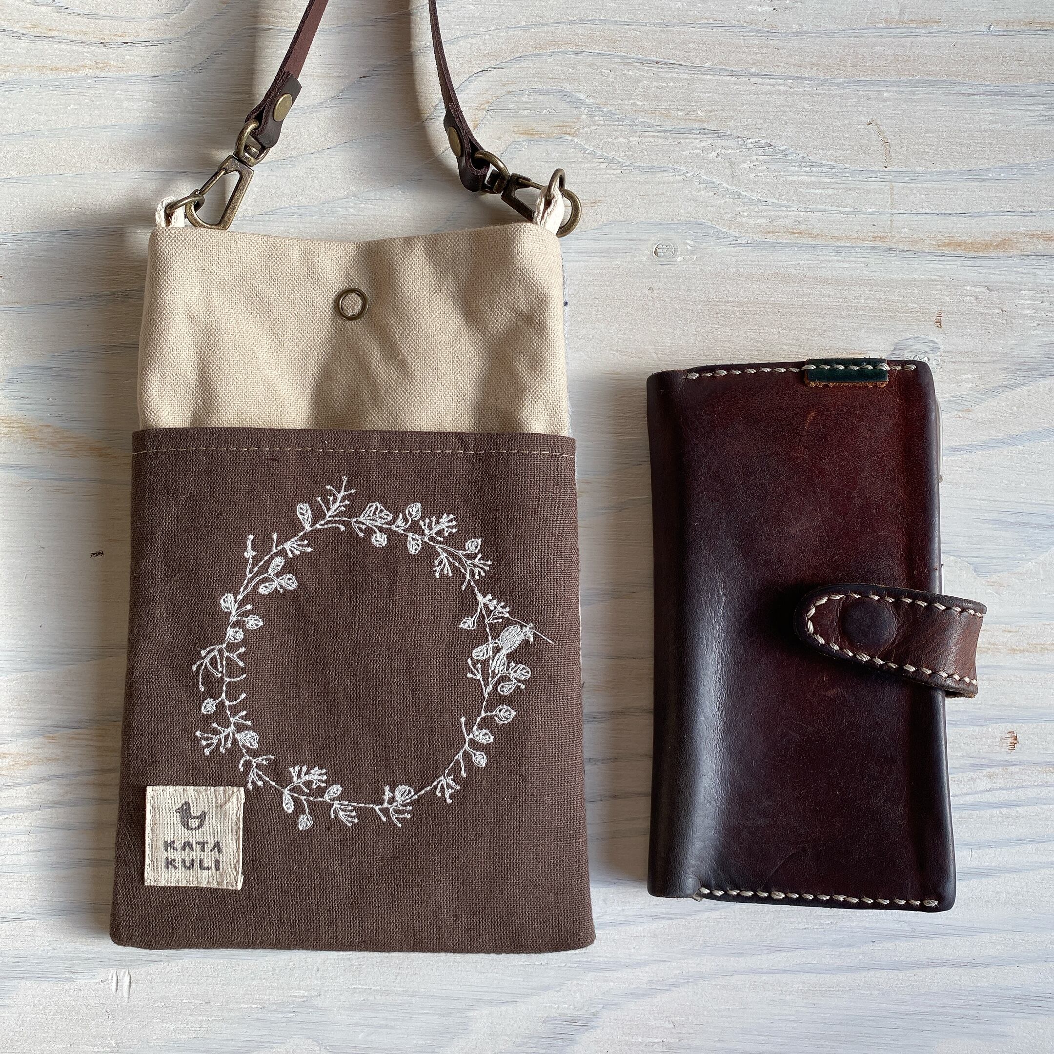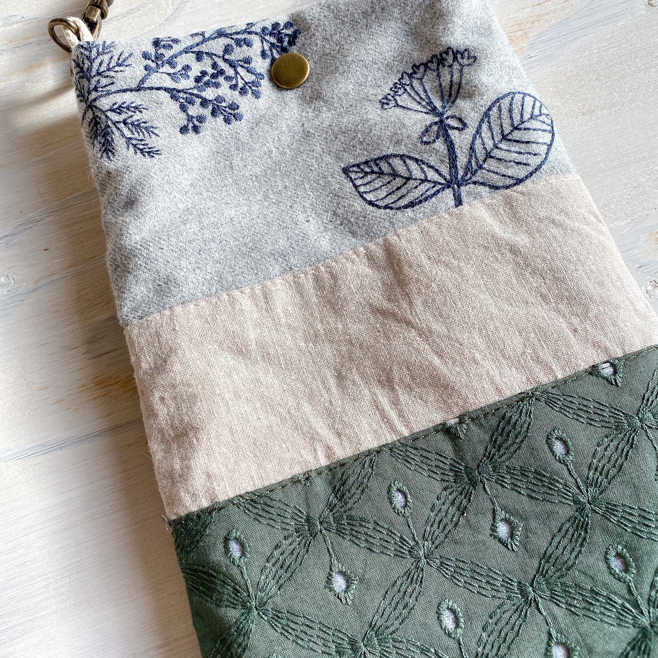入り口のスナップボタンがスマホがうっかりポーチからこぼれるのを防いでくれます。