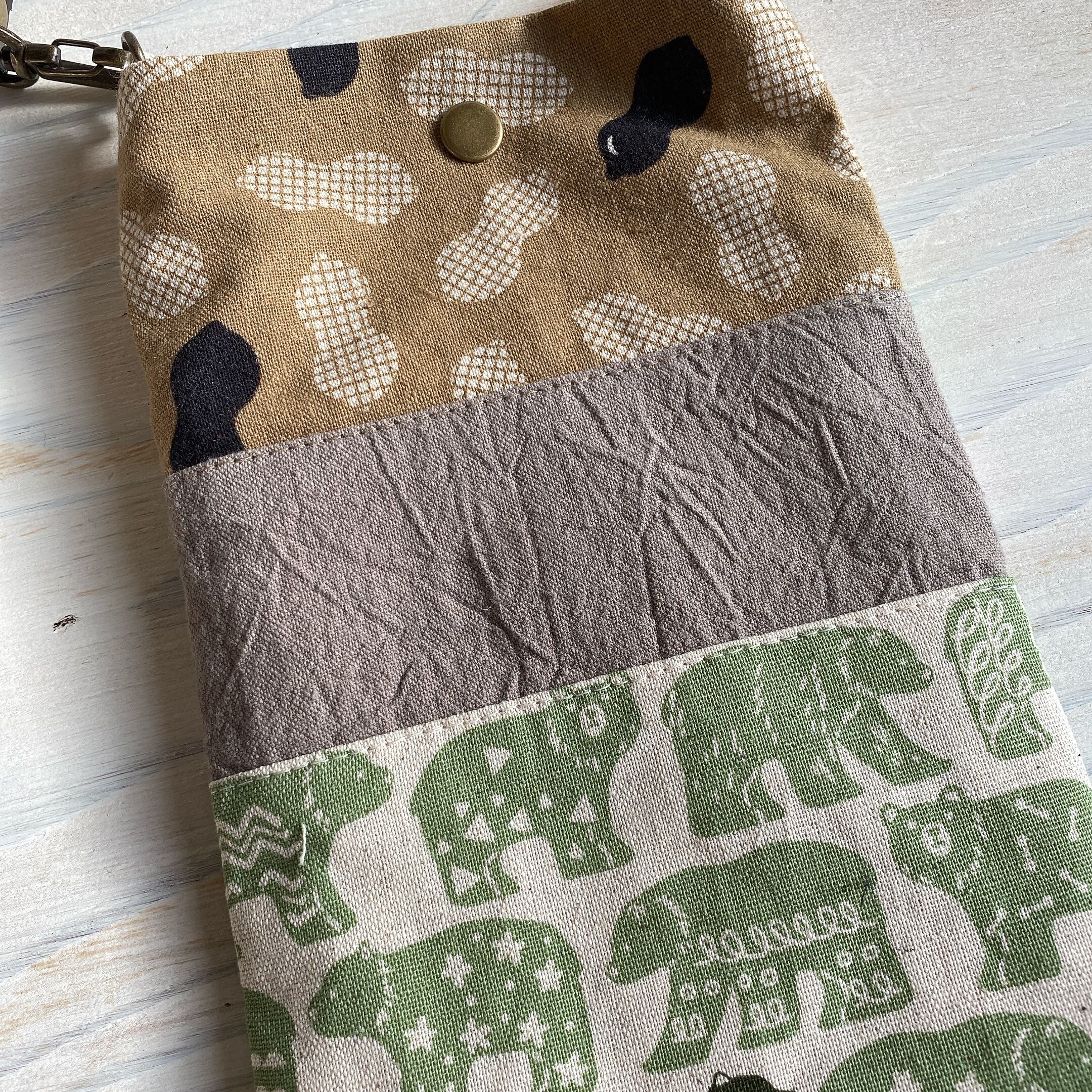 入り口のスナップボタンがスマホがうっかりポーチからこぼれるのを防いでくれます。