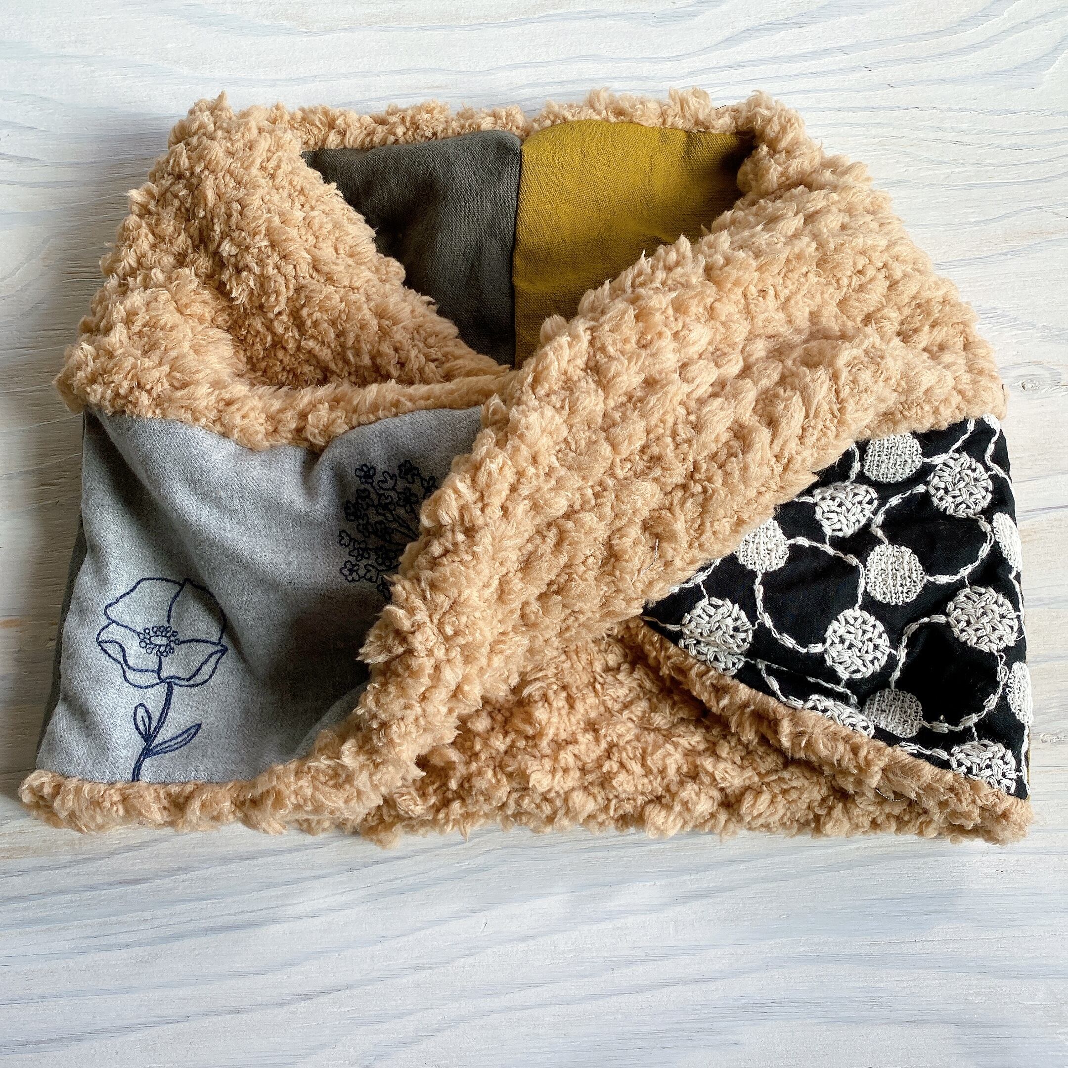 ねじれのmixスヌード(サークル刺繍&薄グレー)