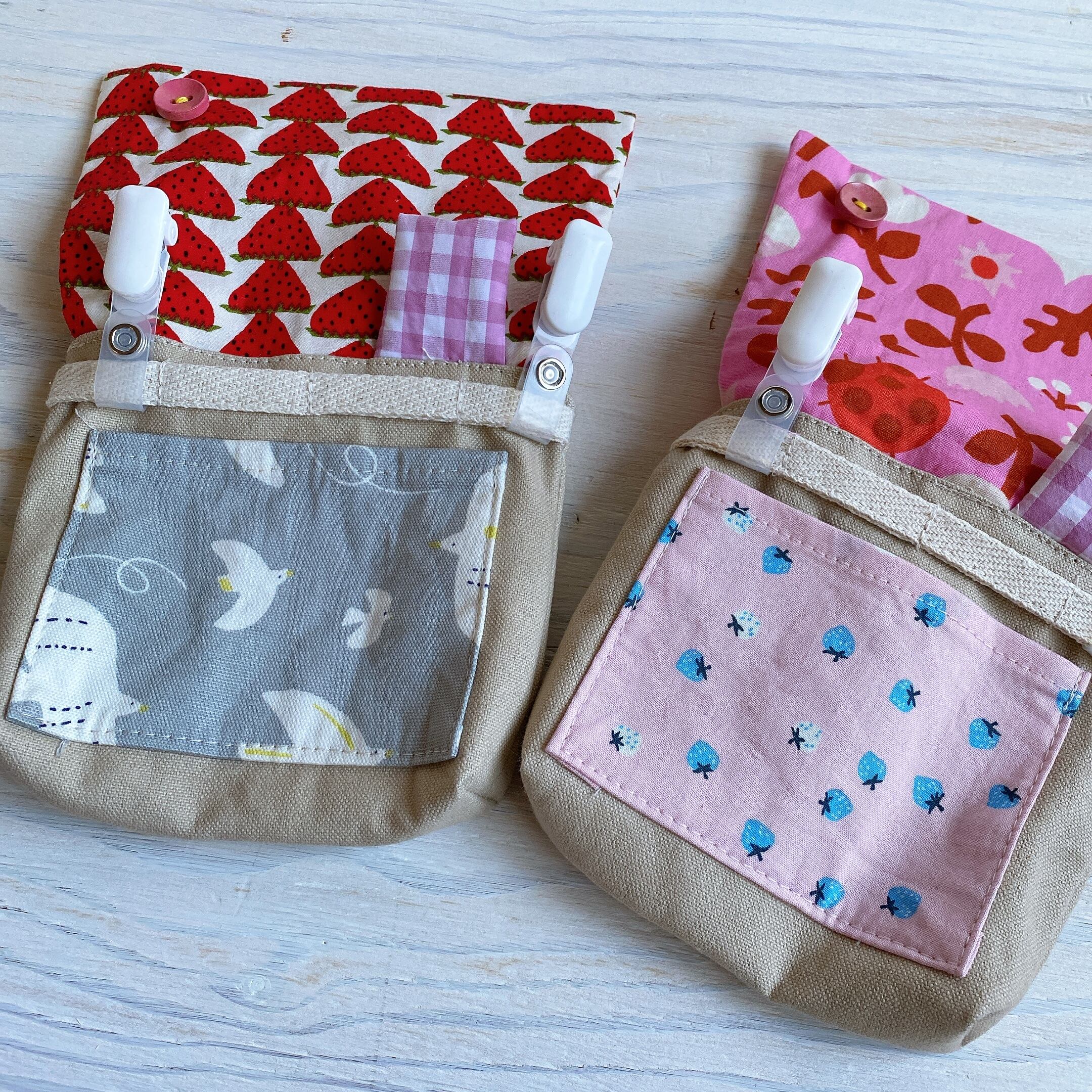 裏にはちいさいポケットを付けて絆創膏なども持ち歩けるようにしました。