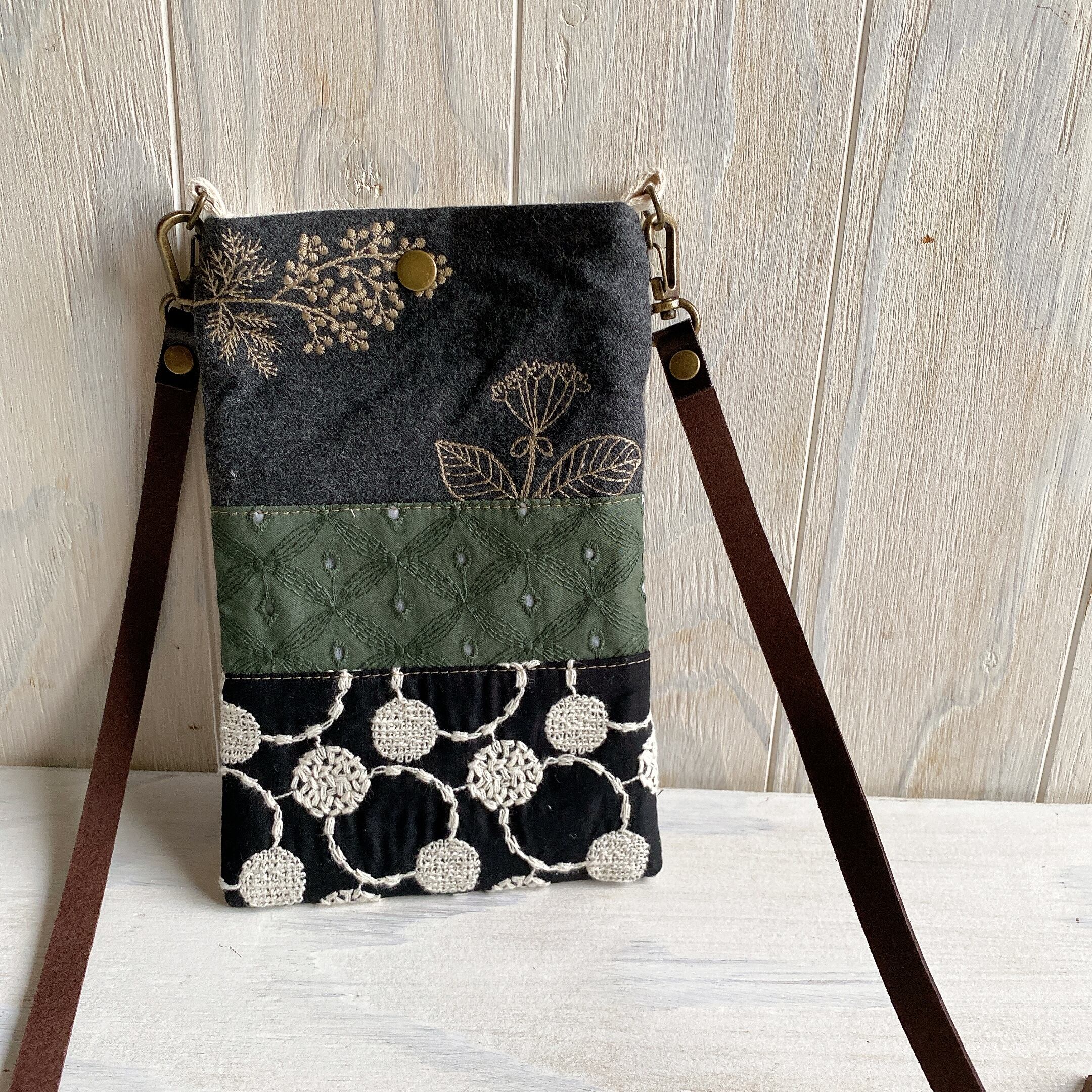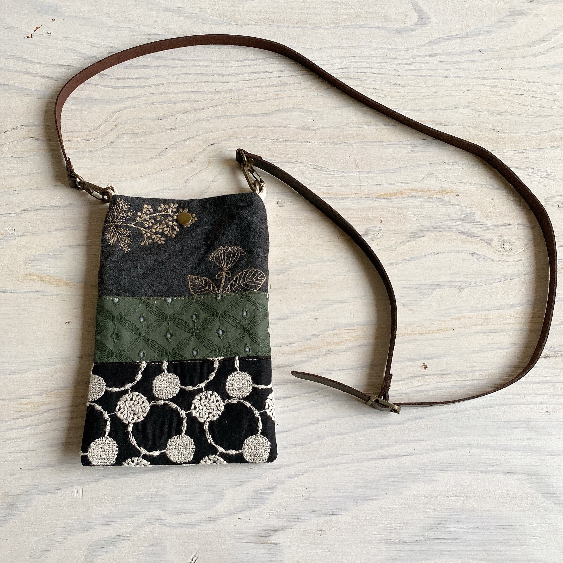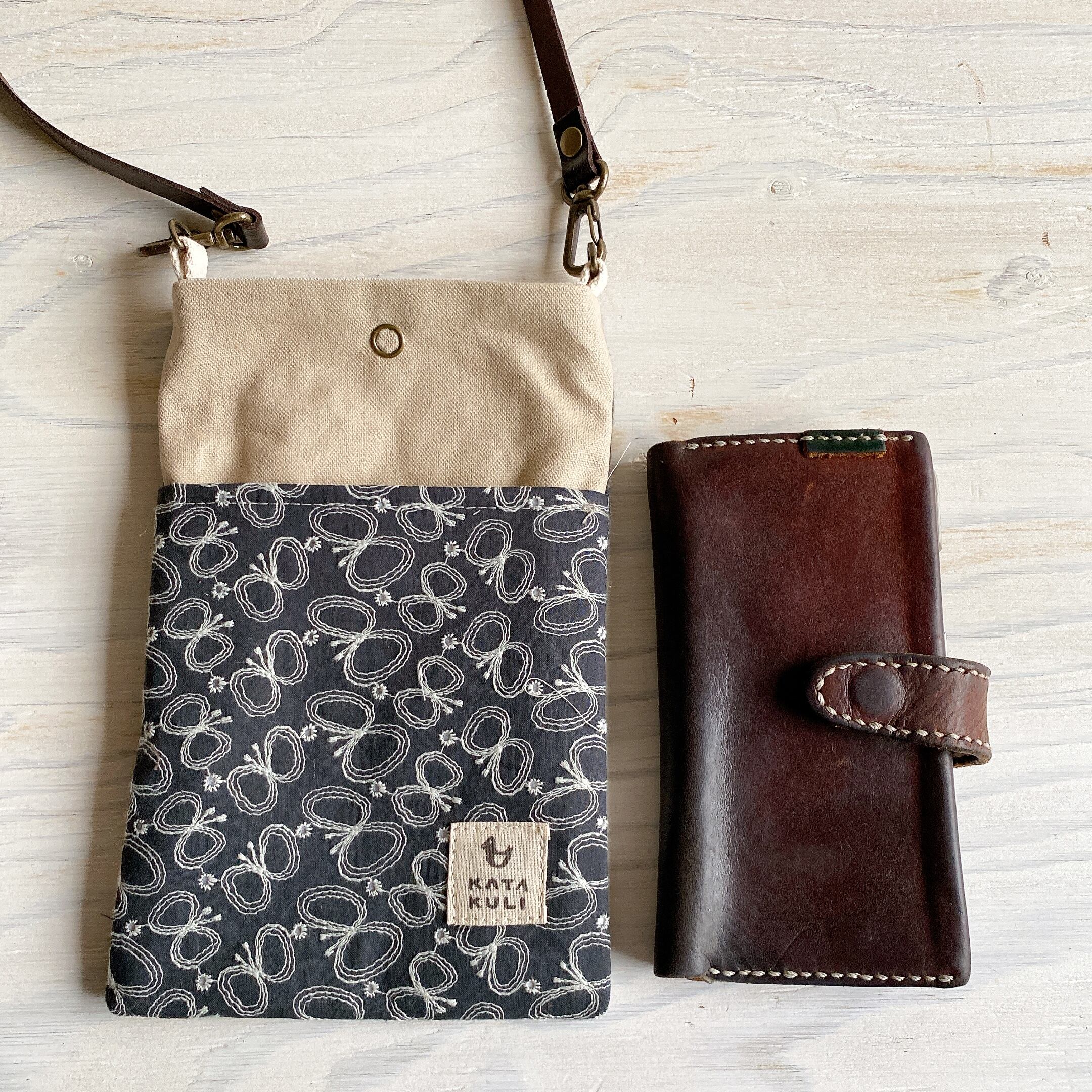 入り口のスナップボタンがスマホがうっかりポーチからこぼれるのを防いでくれます。