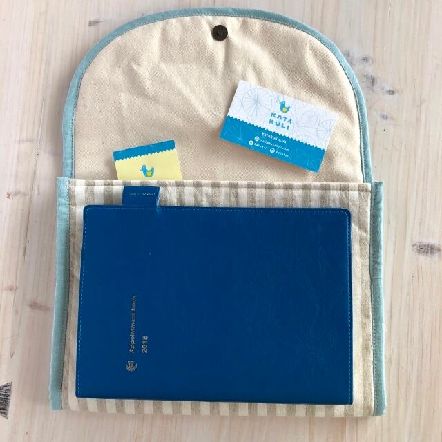 裏側には、相性の良い生地で大き目なポケットがついています。
