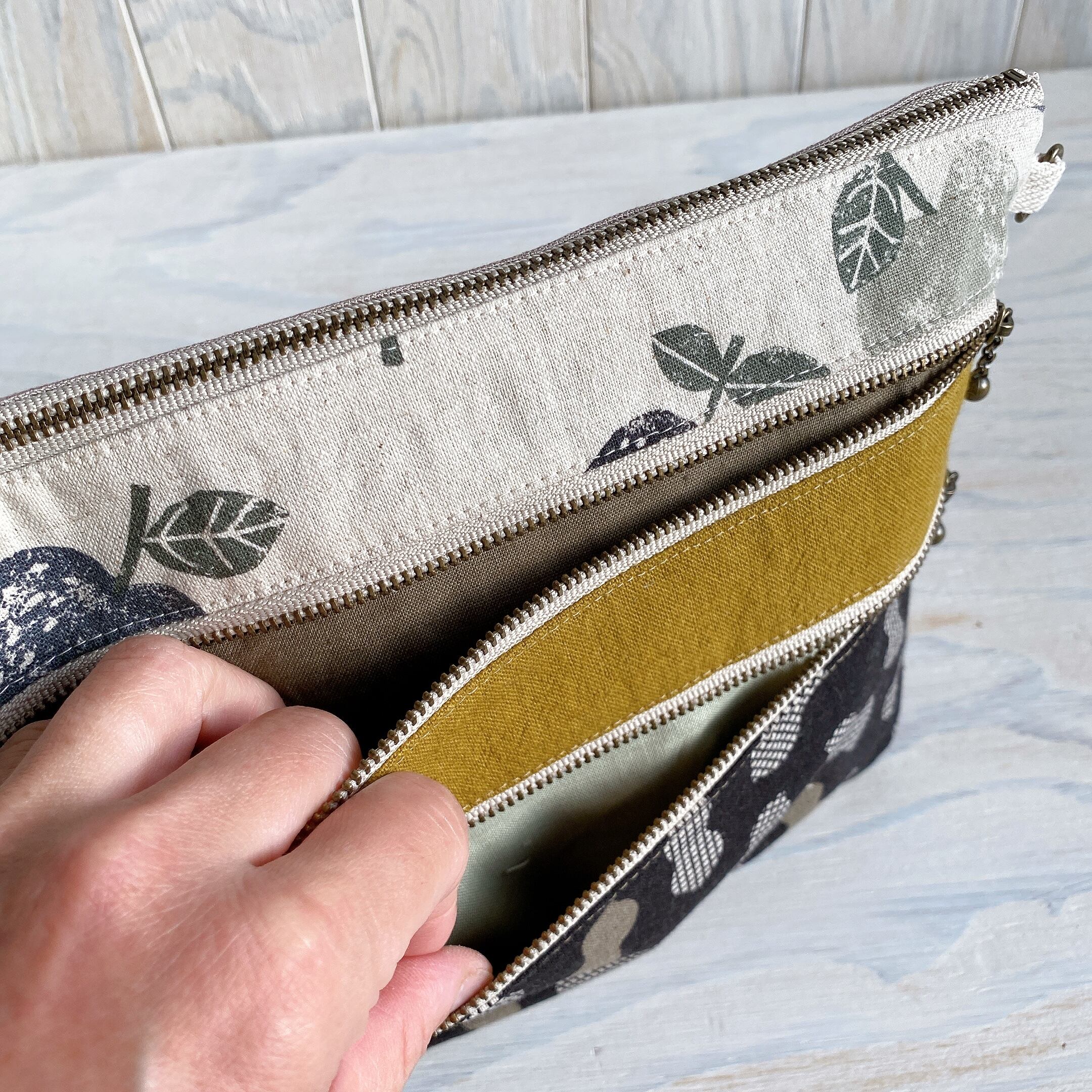 マチ付き3ファスナーポーチ・ポシェットにもなります(ピーナッツ)