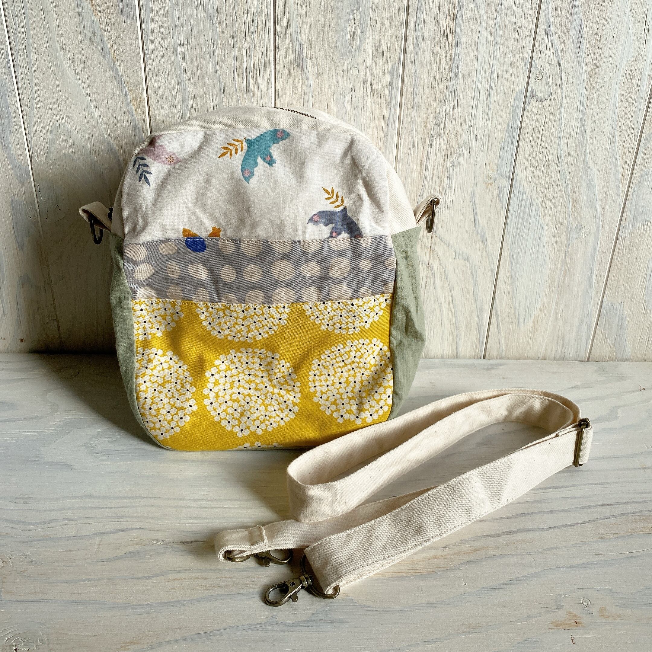 両面さまざまな相性の良い生地を組み合わせて斜め掛けできるおとなのポシェットを作りました。