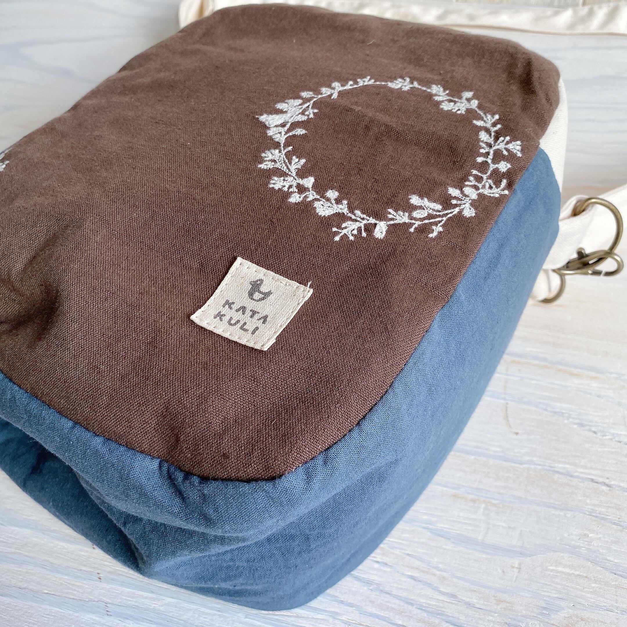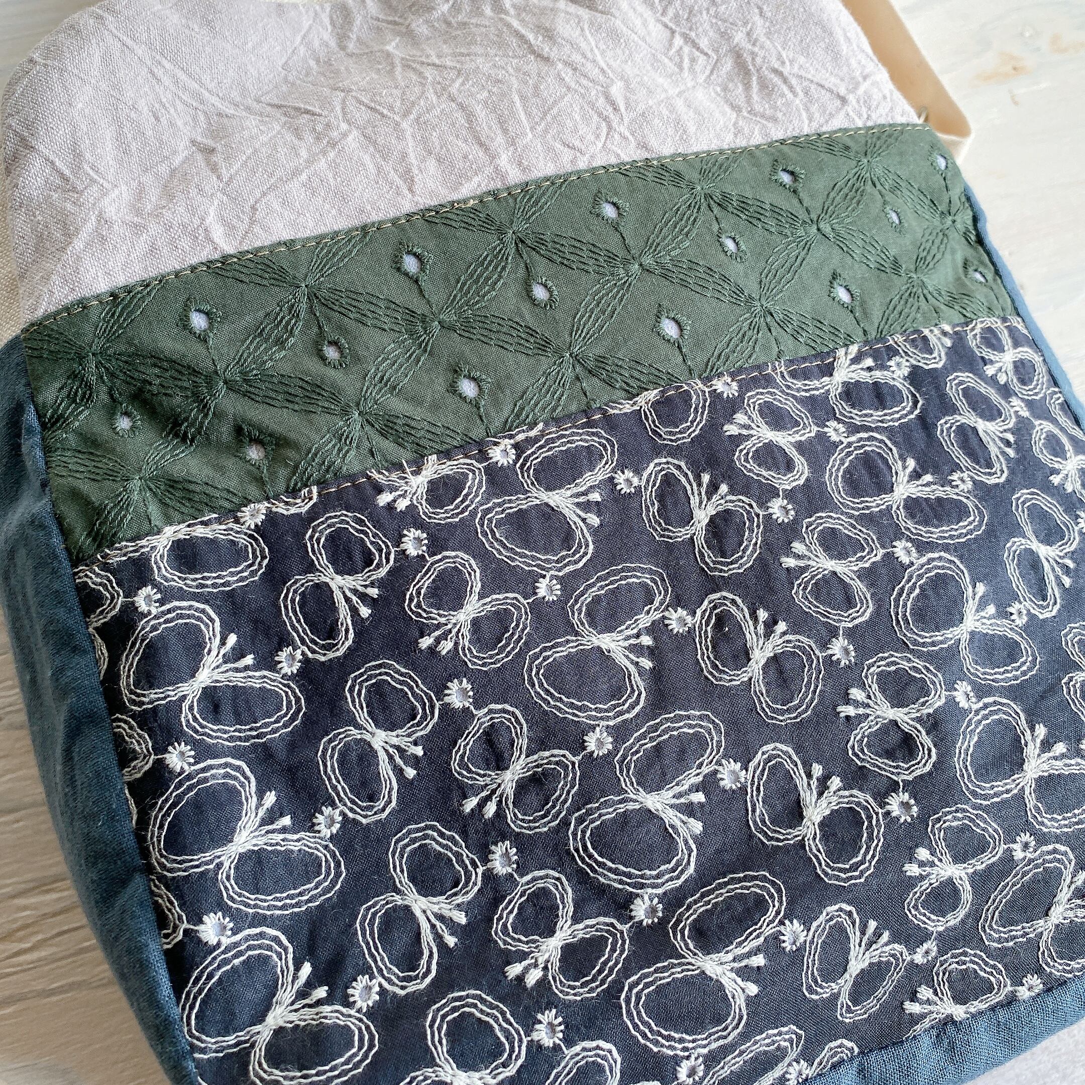 両面さまざまな相性の良い生地を組み合わせて斜め掛けできるおとなのポシェットを作りました。