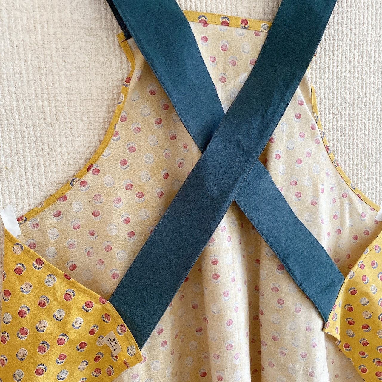 エプロン本体の生地は、綿麻キャンバス生地です。