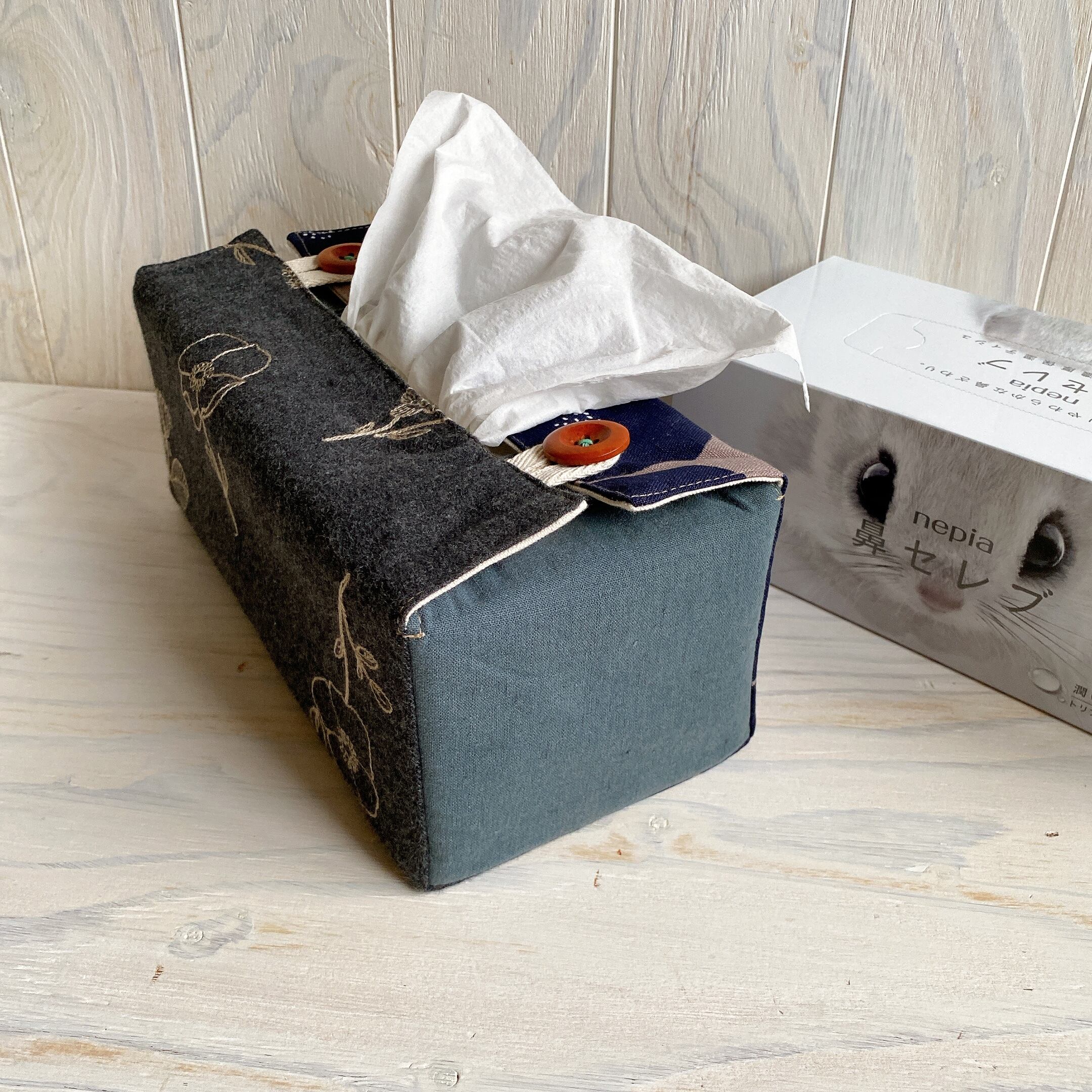 ボックスティッシュを入れて、上のボタンを留めるとぴったりフィット