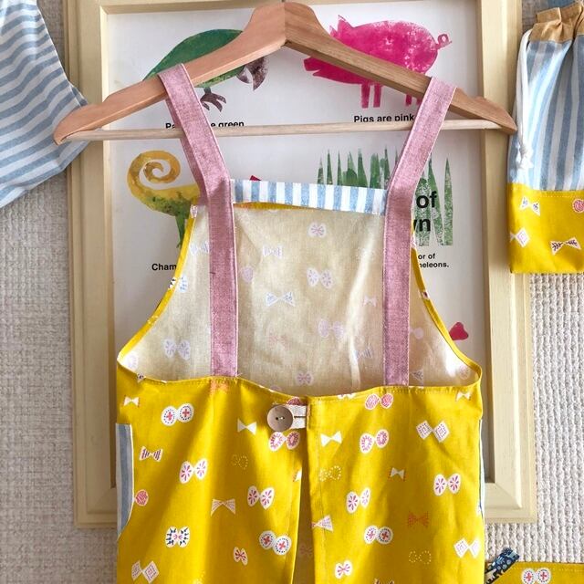 入学準備に♪エプロン4点セット(サイズ125)キイロリボン