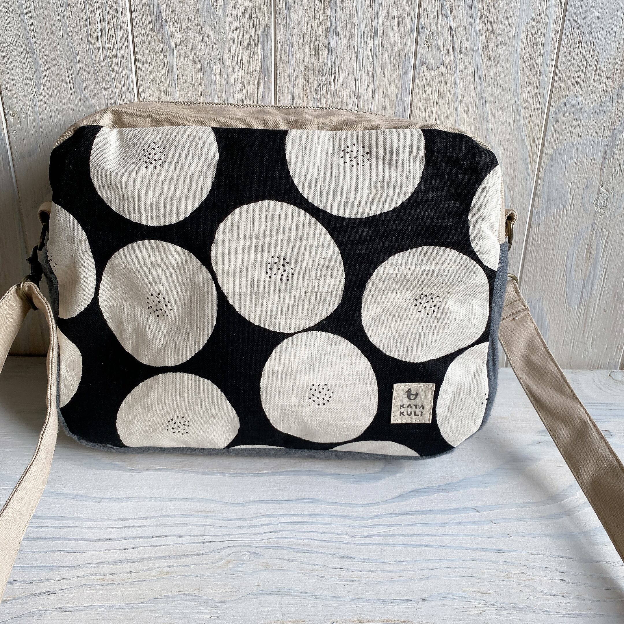 裏地は綿麻キャンバス、マチの部分はハンプの生地を使っていますのでハリがあります