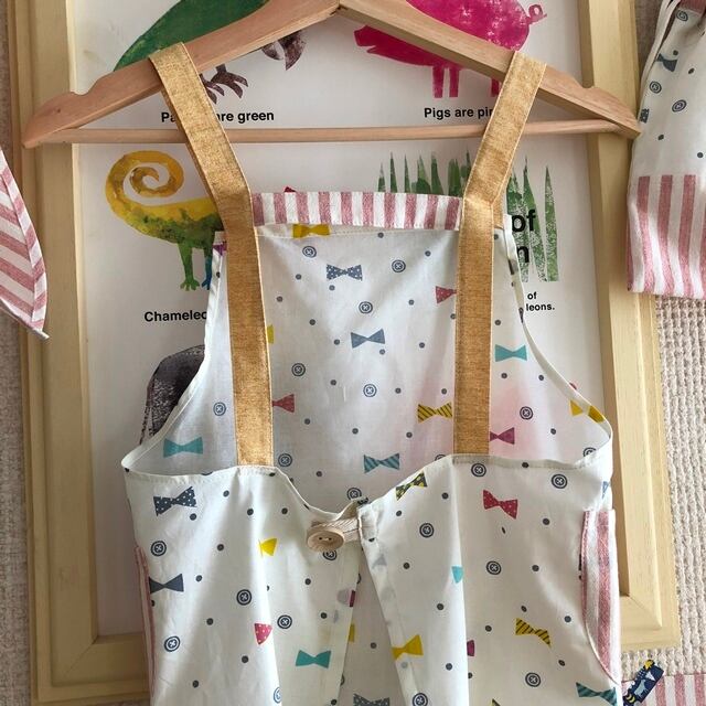 と思い、お年頃な高学年さんに気に入ってもらえそうな生地でエプロンを作りました。