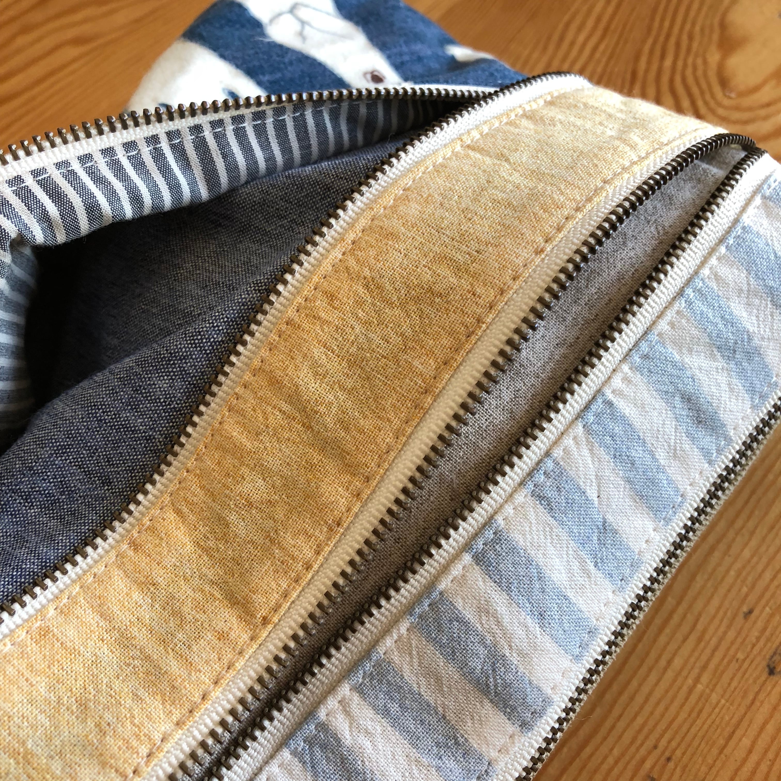 本体はハンプを使っており、柄生地にはすべて接着芯をはって製作しています。