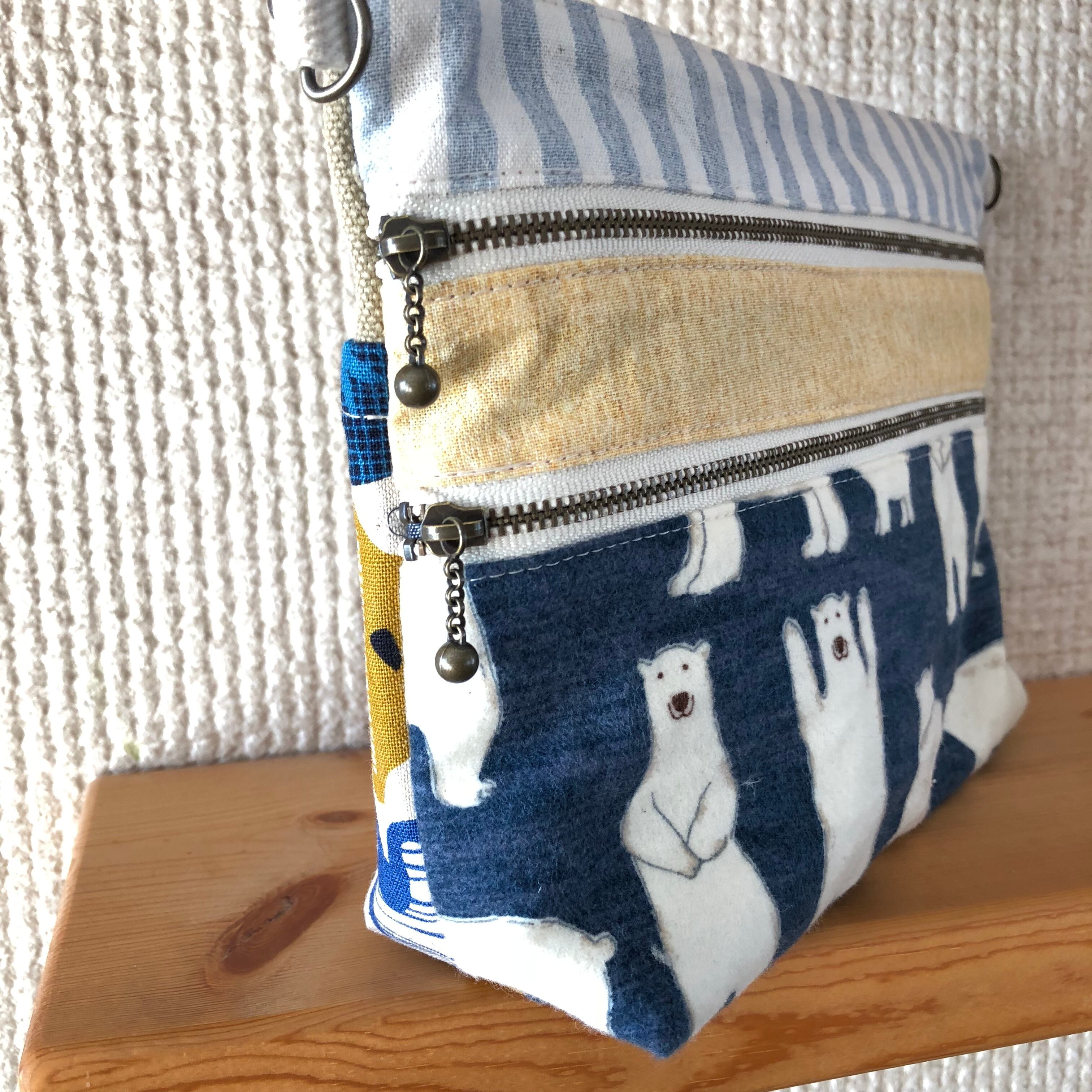 大きめな3ファスナーポーチ*ポシェットにも(しろくま)